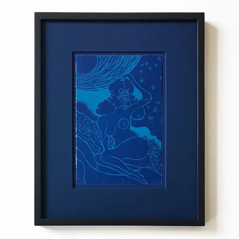 Linocut on wove cotton paper, artist's frame (wooden frame, covered in goatskin)