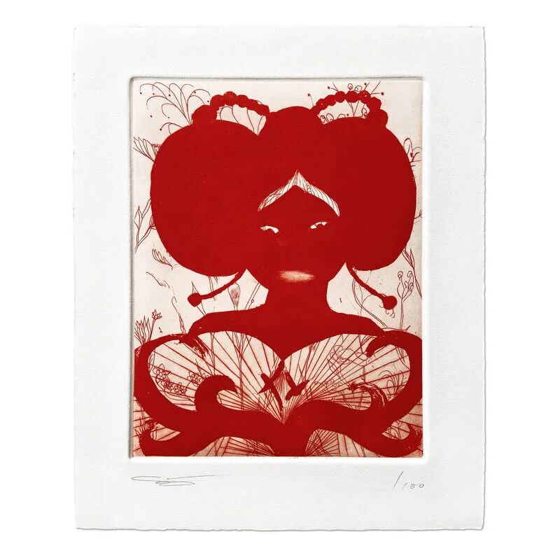 Etching, aquatint and drypoint printed in red, on Hahnemühle wove paper