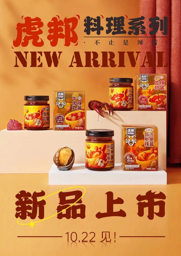 “虎邦肉辣酱,有肉才更香”,从虎邦辣酱的slogan我们不难看出,相比于老干妈的风味系列,虎榜选择了更为细分的肉辣酱赛道,在辣椒的搭配搭档上做起了文章,而这也刚好契合了消费者对于辣酱消费升级的需求,无论是招牌的牛肉辣酱,还是新奇的鲍鱼辣酱、小龙虾辣酱,都噱头十足,极大满足了年轻人的猎奇需求。