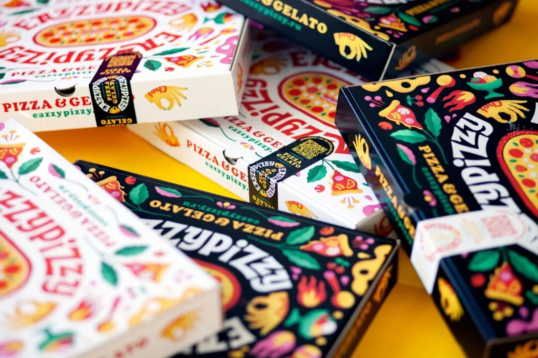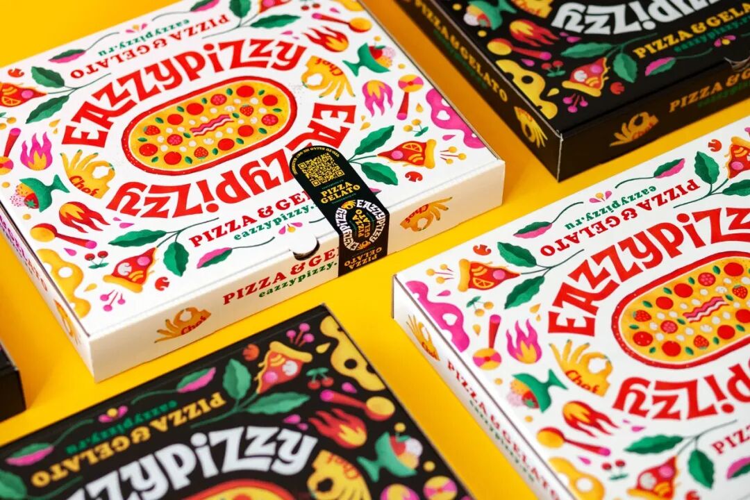 年轻人都爱令人心花怒放插画风披萨品牌形象包装外卖包装设计