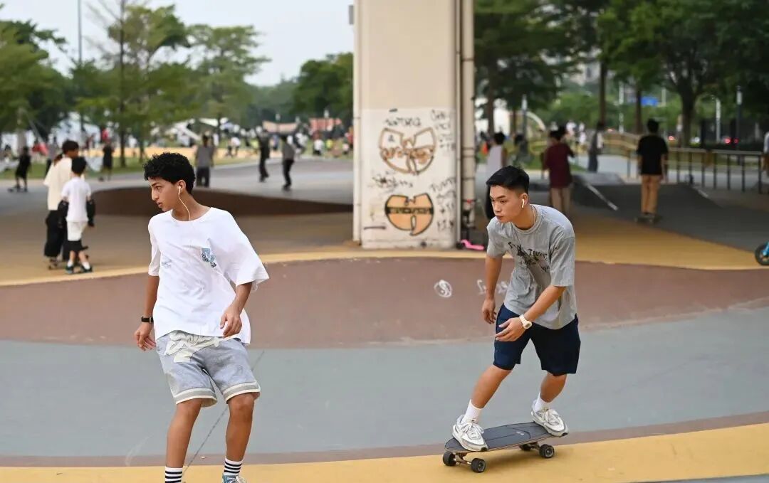 拜托,带个滑板来公园真的超酷的。图/视觉中国