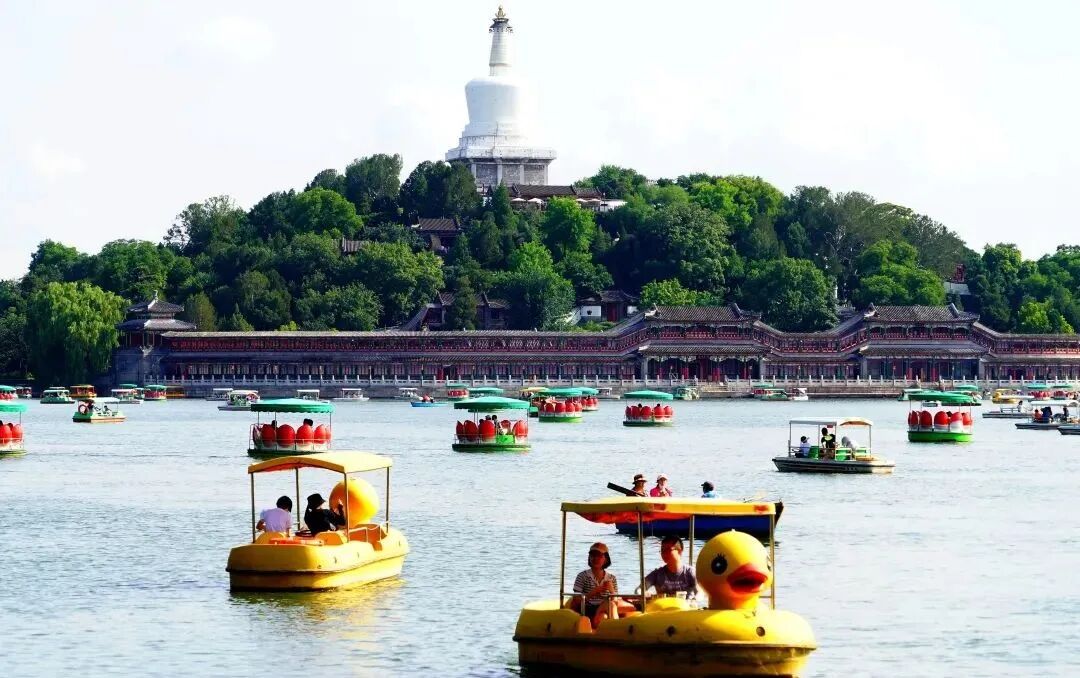 “海面倒映着美丽的白塔,四周环绕着绿树红墙。”图/视觉中国