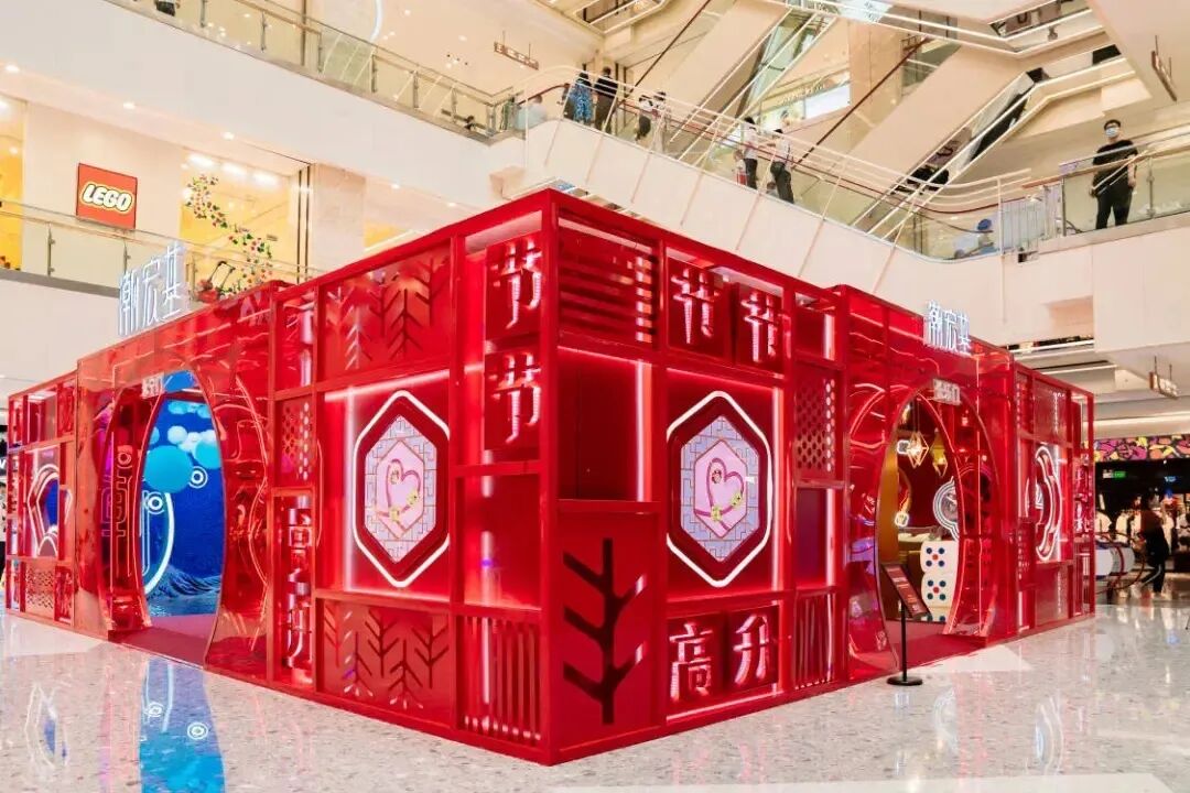 国潮品牌的兴起在购物中心掀起了一股国风浪潮,品牌主题快闪店纷纷披上“中国风”闪亮登场。有趣的是,商业项目在国风属性加持下欣欣向荣,与国潮品牌的毁誉参半形成鲜明对比,明确的视觉锚点和主题系列成为商场中瞩目的焦点。
