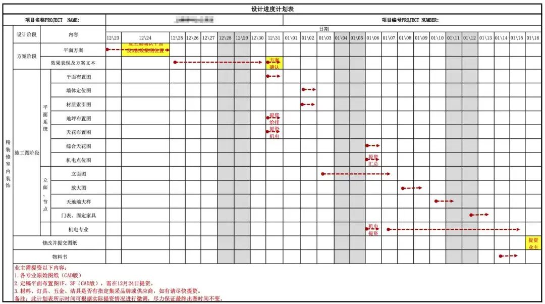 但最后得到李工的通知,集团要求设计工作必须要在过年前完成,我们也被迫只能启动项目了。之后根据最终完成日期倒推了一个设计进度表给李工。