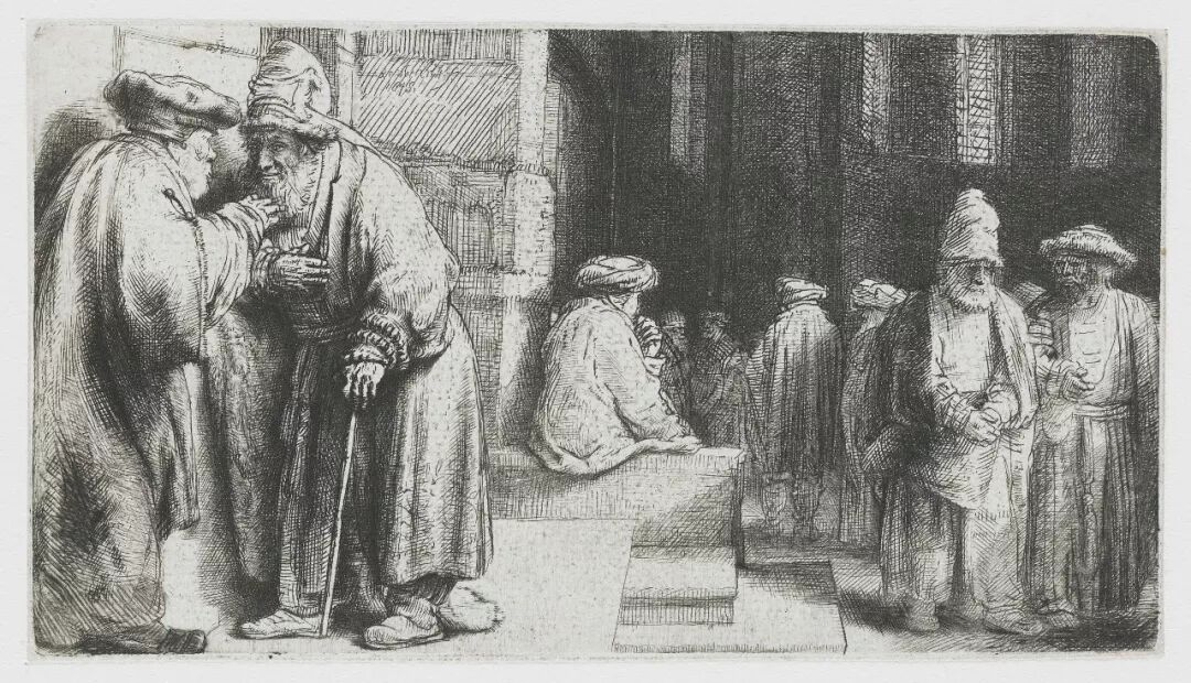 天赋结合努力,伦勃朗少年得志,20出头就有了超凡的画艺。要知道这个年纪,威尼斯最伟大的画家提香,还在给老师贝里尼补背景。伦勃朗已经开画室接单收徒了。