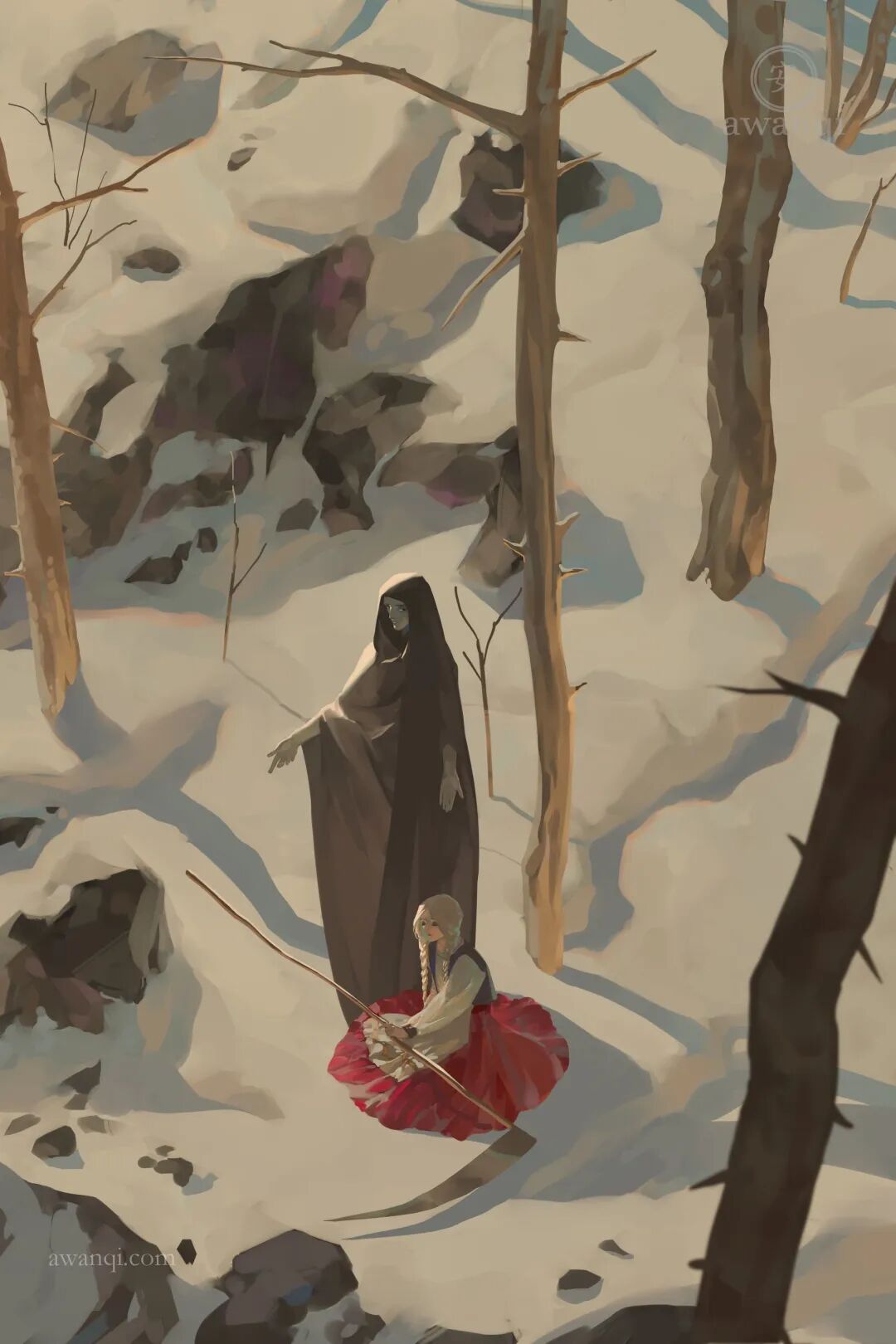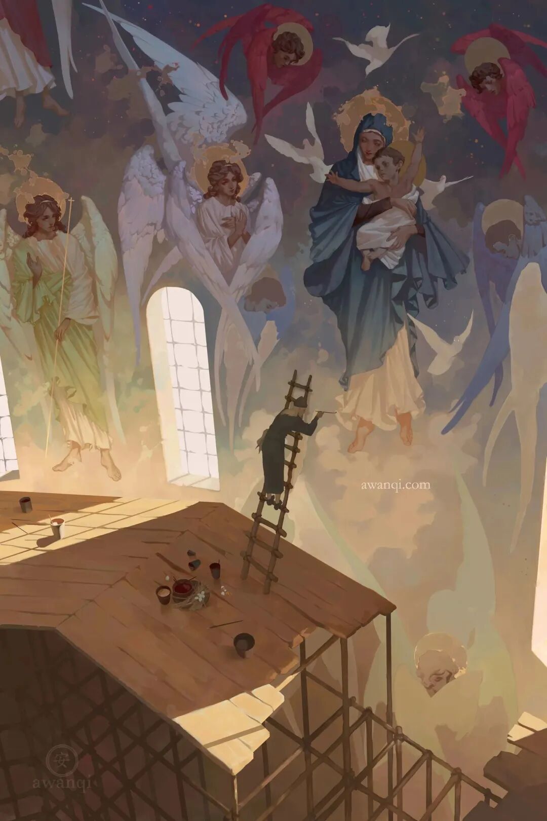 aw anqi的作品风格非常独特鲜明,她的创作通常以历史和幻想题材为主。aw anqi在光影运用上更是绝妙,尤其跟以前作品对比时,光影效果越来越细腻。
