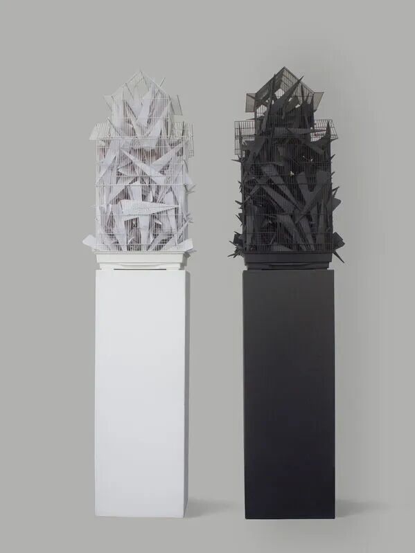 Pencil, acrylic, gouache, pen, thread, found objects on paper