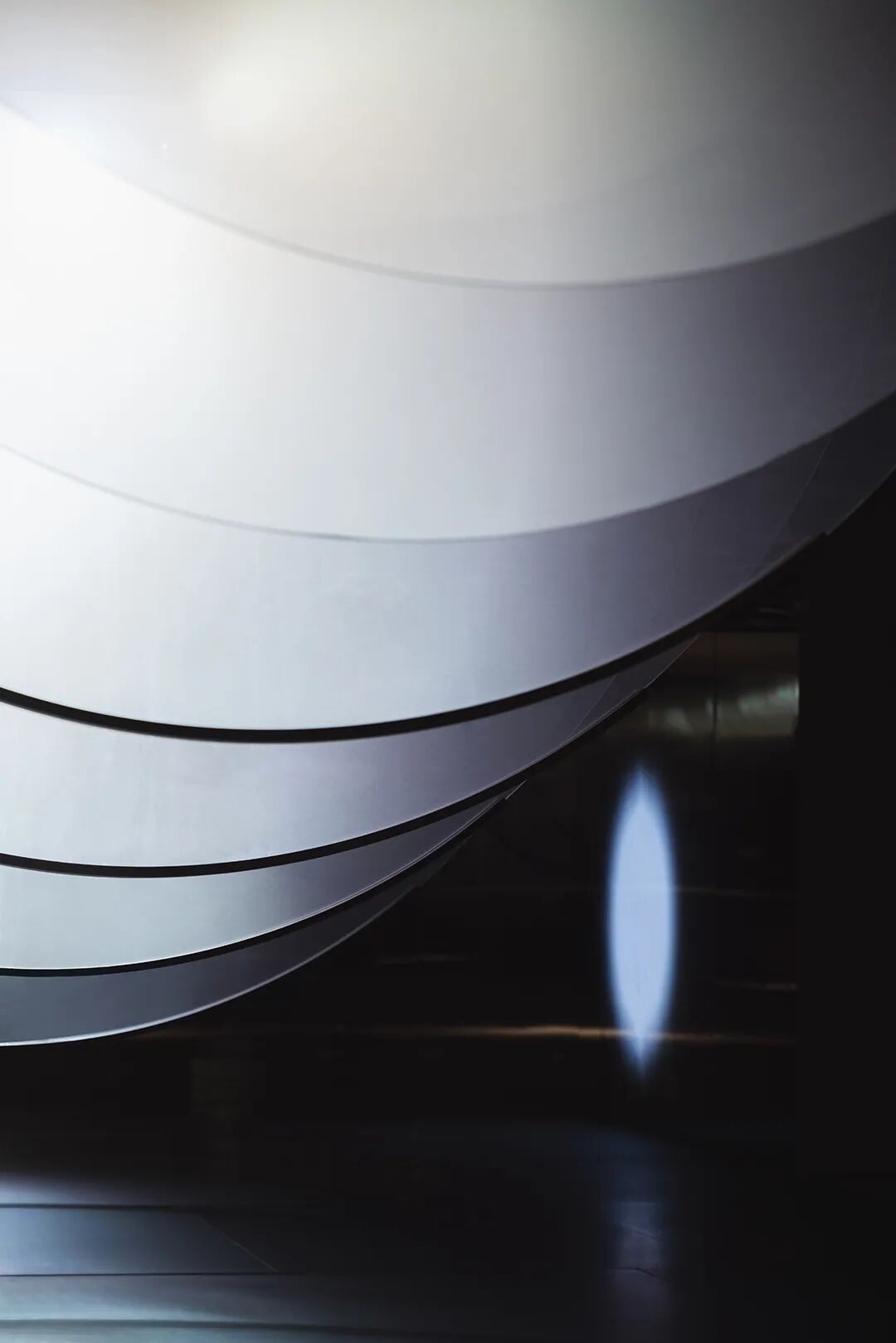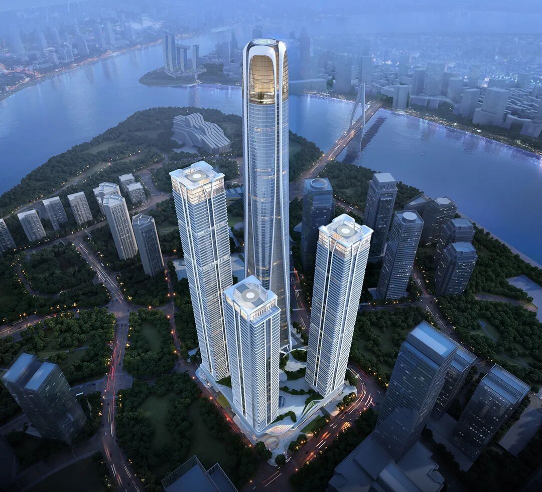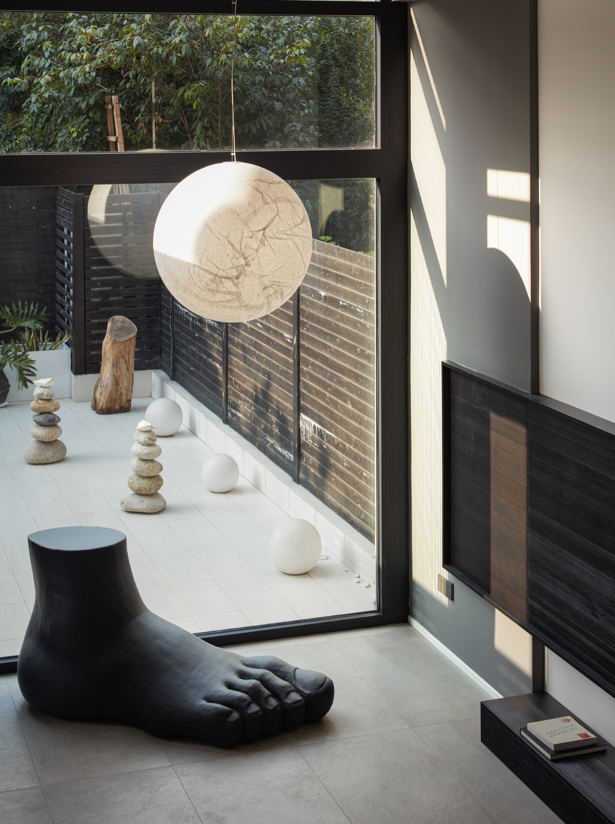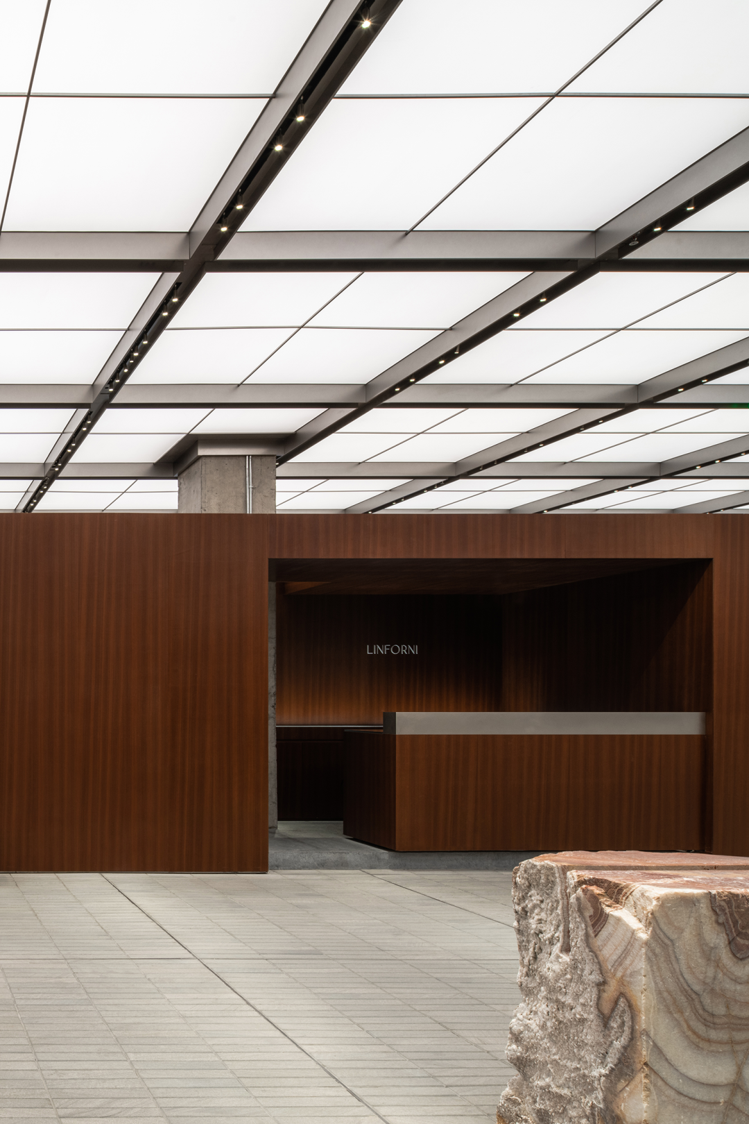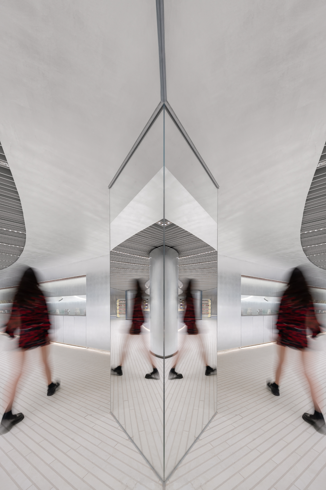 本案建筑为五栋塔楼,一层为庭院景观及连接的户外露天泳池,中间为大型的开口采光天井,巧妙地将自然光线与地面景观引入到负一层的会所空间,透过中央水景的波光反射,创造出奇妙的空间戏剧性。