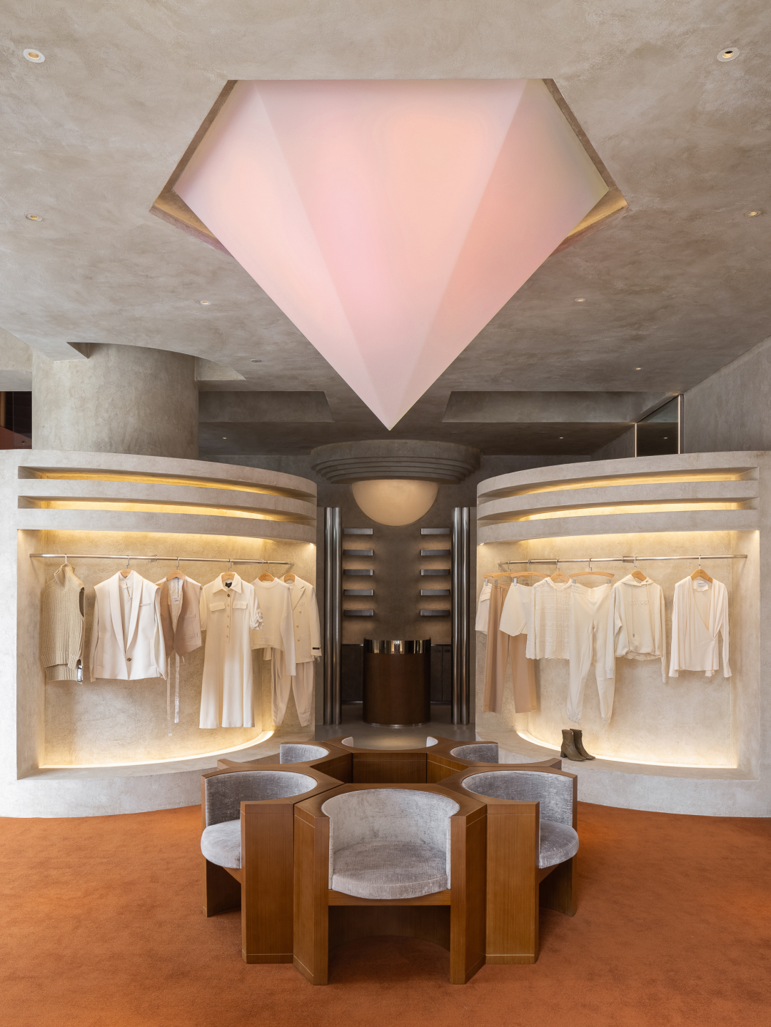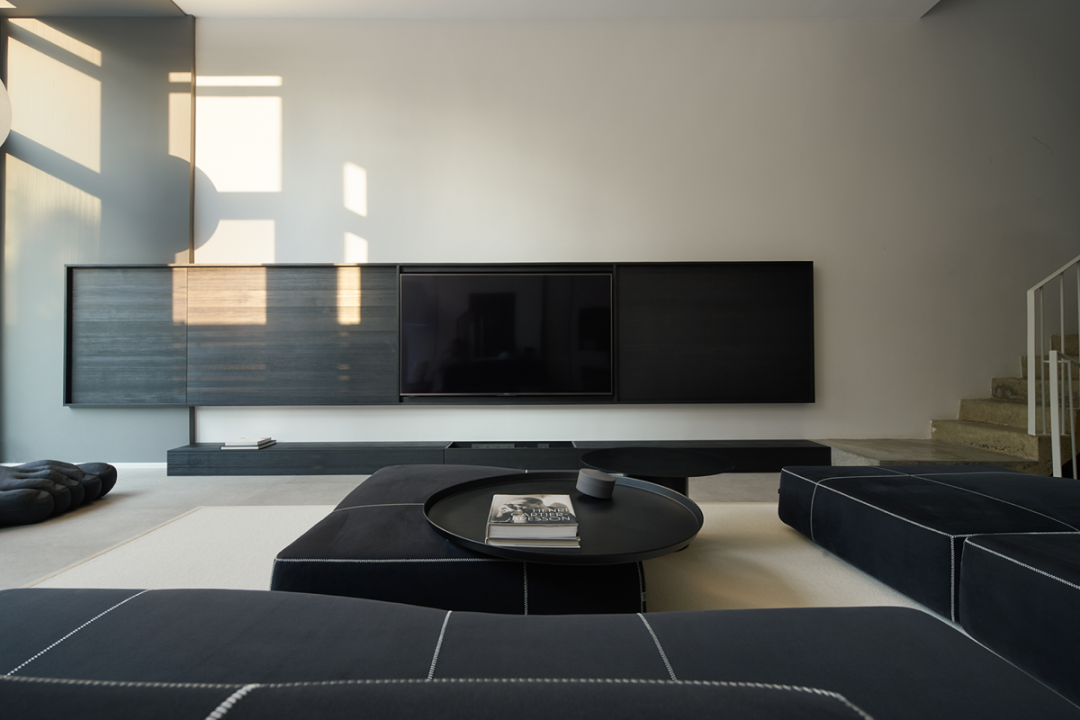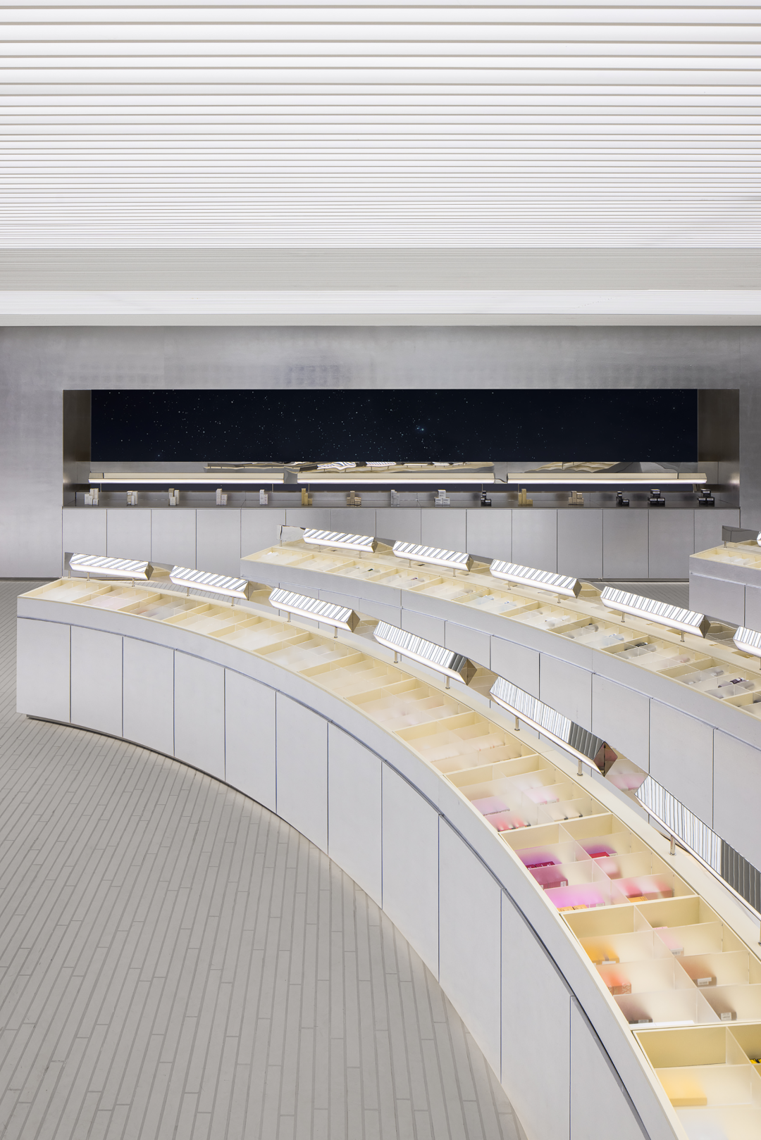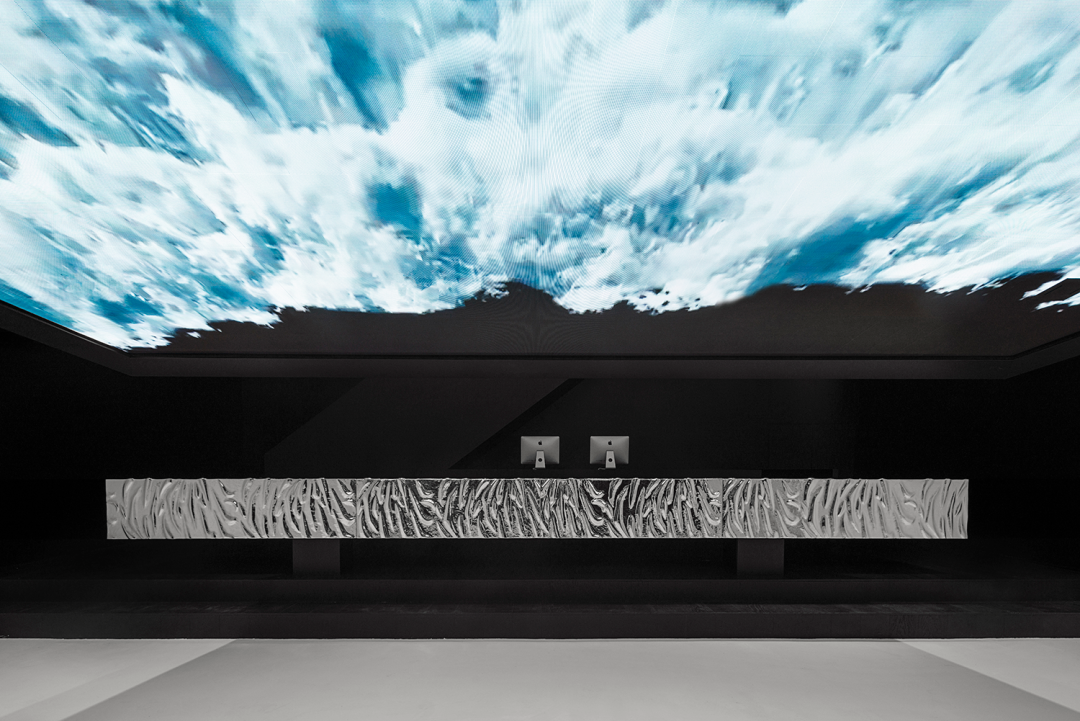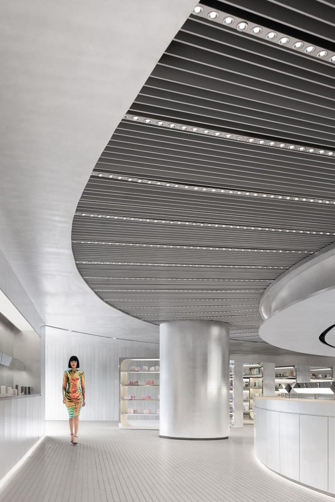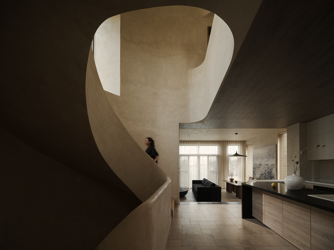 本案建筑为五栋塔楼,一层为庭院景观及连接的户外露天泳池,中间为大型的开口采光天井,巧妙地将自然光线与地面景观引入到负一层的会所空间,透过中央水景的波光反射,创造出奇妙的空间戏剧性。