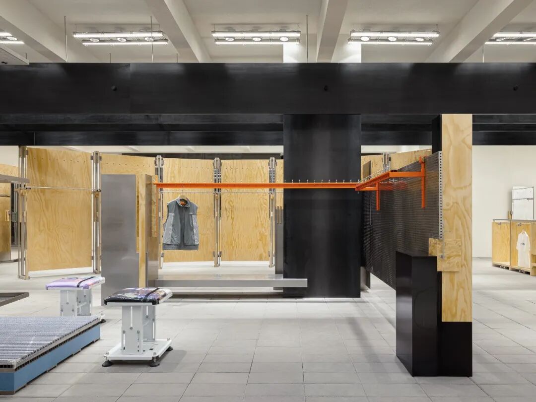在BEASTER概念店的设计中,设计师通过对已有产品进行定制化改造,利用局部重组来代替崭新的设计,以此达成独特的设计反思并推动空间设计的表达。被改造商品的选择逻辑由两个条件构成:必须是市场上成熟的、可批量采购的商品,并且可以通过较低的成本获得。再造过程让零部件之间建立了新的序列,同时通过保留“符号性”的局部来表达品牌内核。功能简便、多元丰富的陈列模块体现出从标准化到趣味性的迭代,建立起新的审美效应,并达成同样的陈列效率。