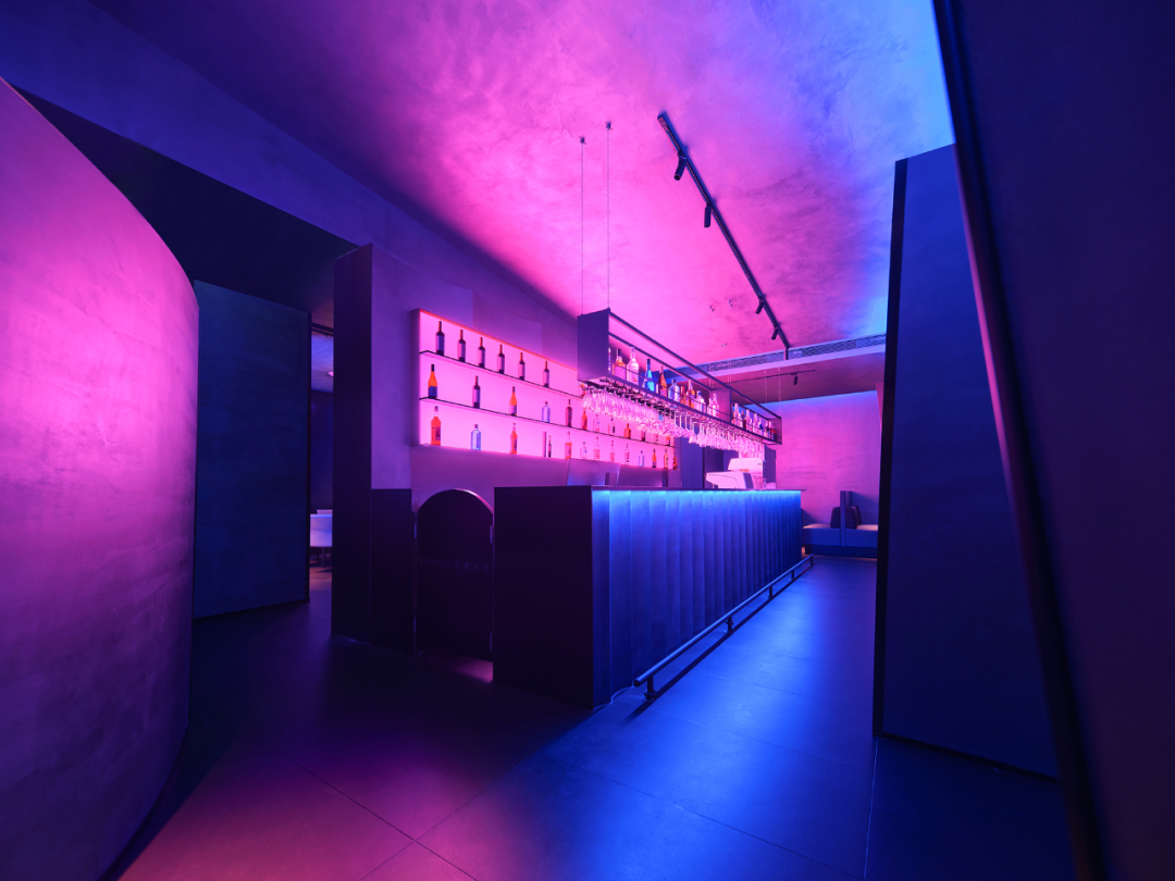 Blazing Night酒吧以光色变幻营造幻想的实验场,吸引新一代的都市人群。随着白天变成夜晚,咖啡厅也变成了酒吧。弧形灯膜制造出令人沉浸的氛围,故事在光线的弥漫中切身展开。红外射线在烟雾中展现着时间的分子运动,两条不同速度的灯轨在结构中穿梭、交叠。光色迷离,虚实结合,以超现实的精神世界,赋予空间探索的欲望。