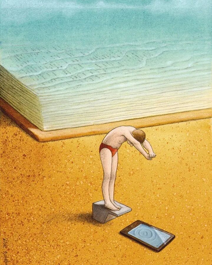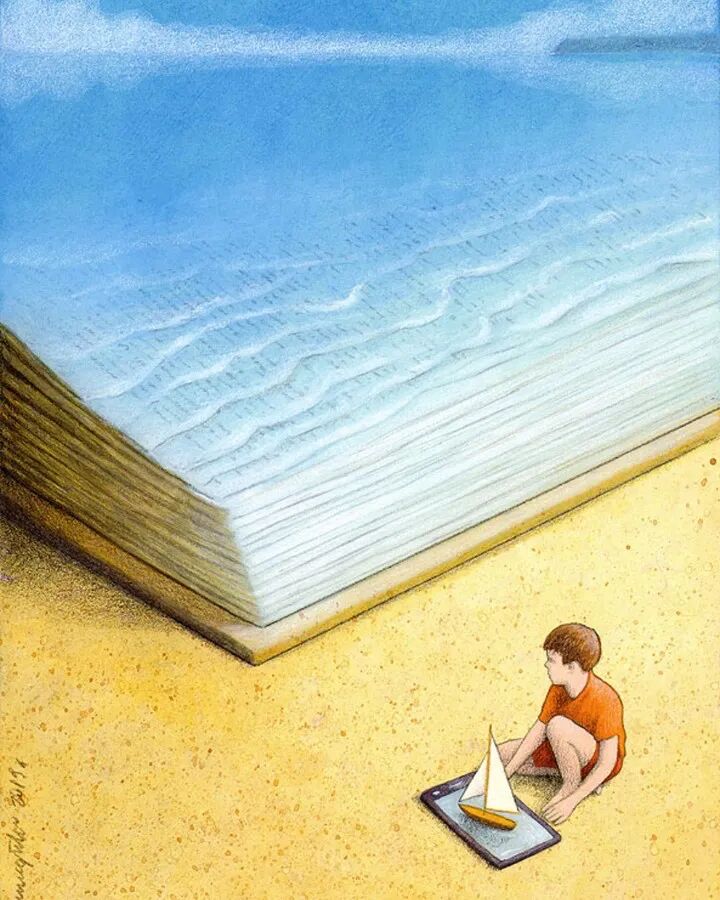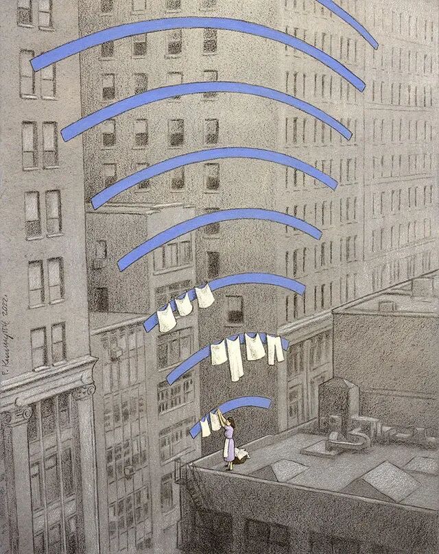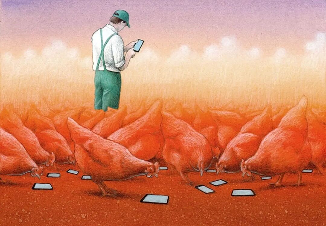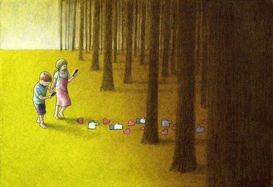 这是一个日渐严重的社会问题,为什么人们会沉迷手机?沉迷在一个虚拟的世界里?来自波兰的插画家帕维尔·库钦斯基,就以充满讽刺意味的插画,表达了他对沉迷手机和网络的现实问题的关心和关注。试图让人们自己寻找答案,每一幅作品都富含深意,又不至于太隐晦。