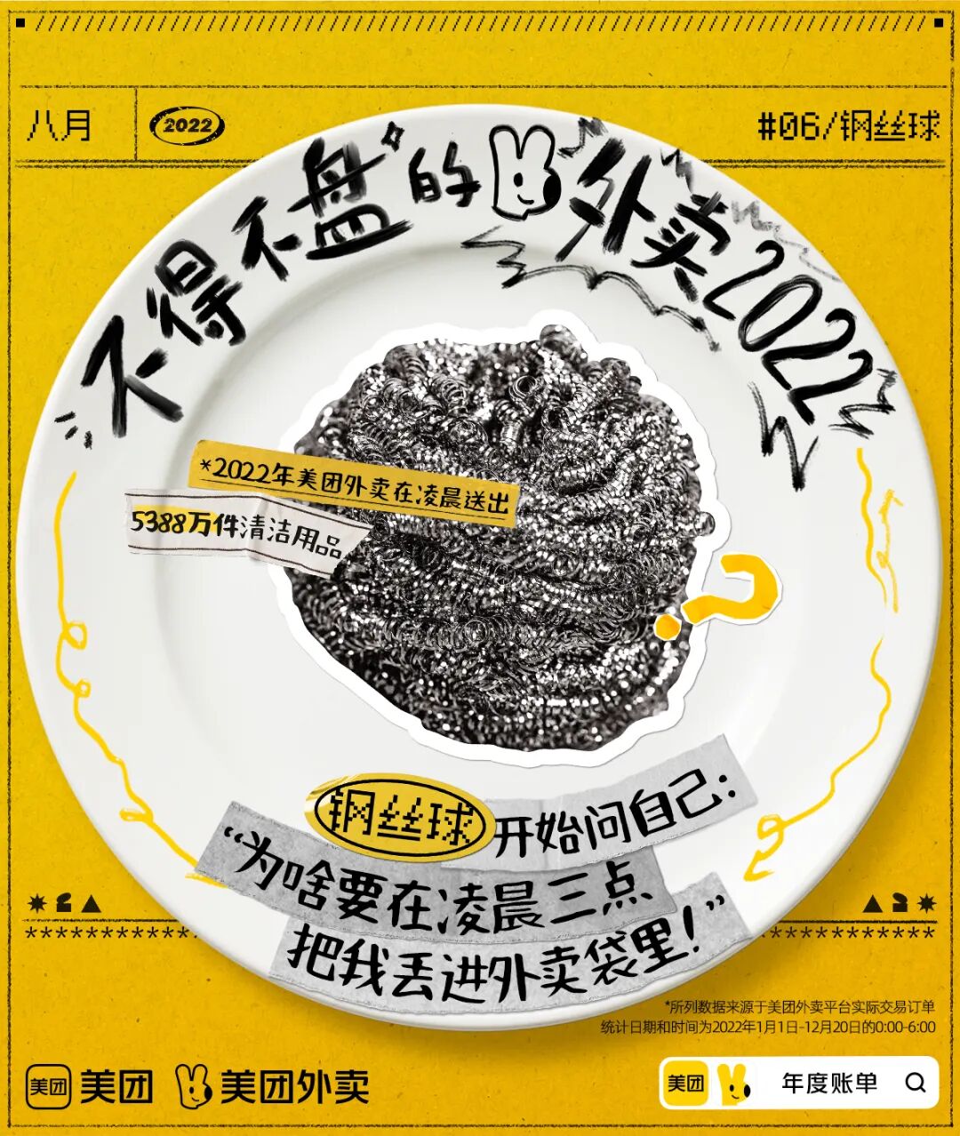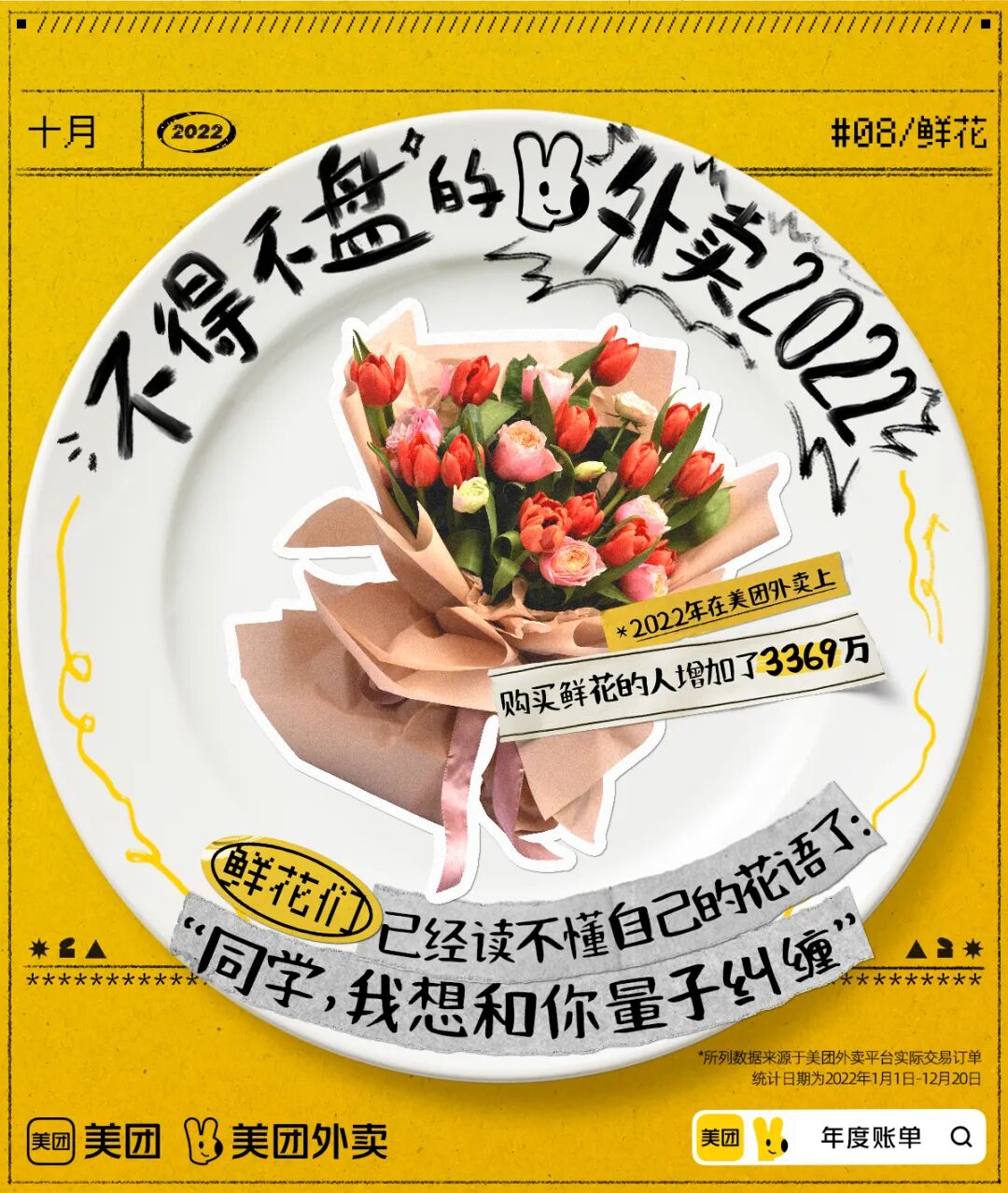 但我们最终也会也跟钢丝球一样在一团乱麻里努力治愈自己的精神内耗,跟飞盘一样有一颗想飞的心;跟鲜花一样不害怕和生活来一场量子纠缠。因为在诸多不确定中,至少美团外卖能给我们一些小确定。