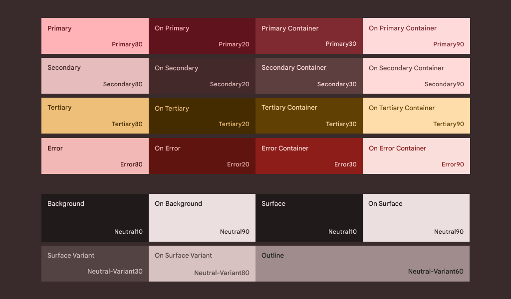 此外,Google也允许用户从图像中挑选出两种主色且将其用作主题的基础色调。如果我们不想使用背景中的颜色,也可以从"Basics colors"中进行选择,并将其用作整个UI中的默认颜色。