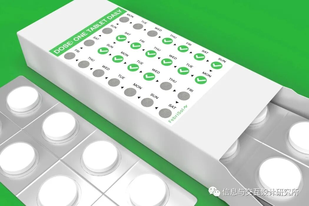 FebriSol由皇家艺术学院学生Ricky Stoch开发,是一种粘贴在抗逆转录病毒药物(ARV)包装顶部的不干胶。