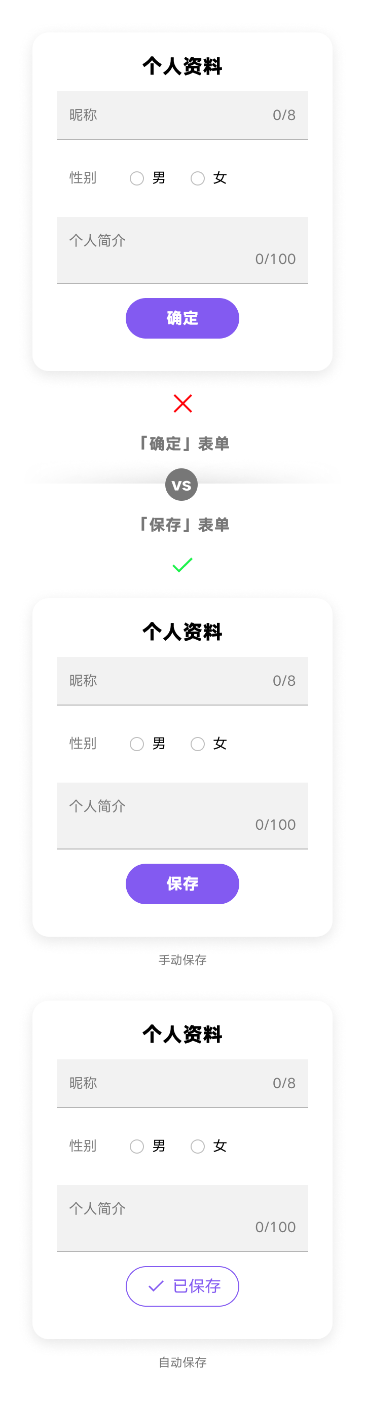 如果只是简单的表单,例如设置用户名什么的,重来一次倒也无所谓。但如果是填写项达到三、四条甚至更多,看不到「保存」两个字难免担心数据丢失。