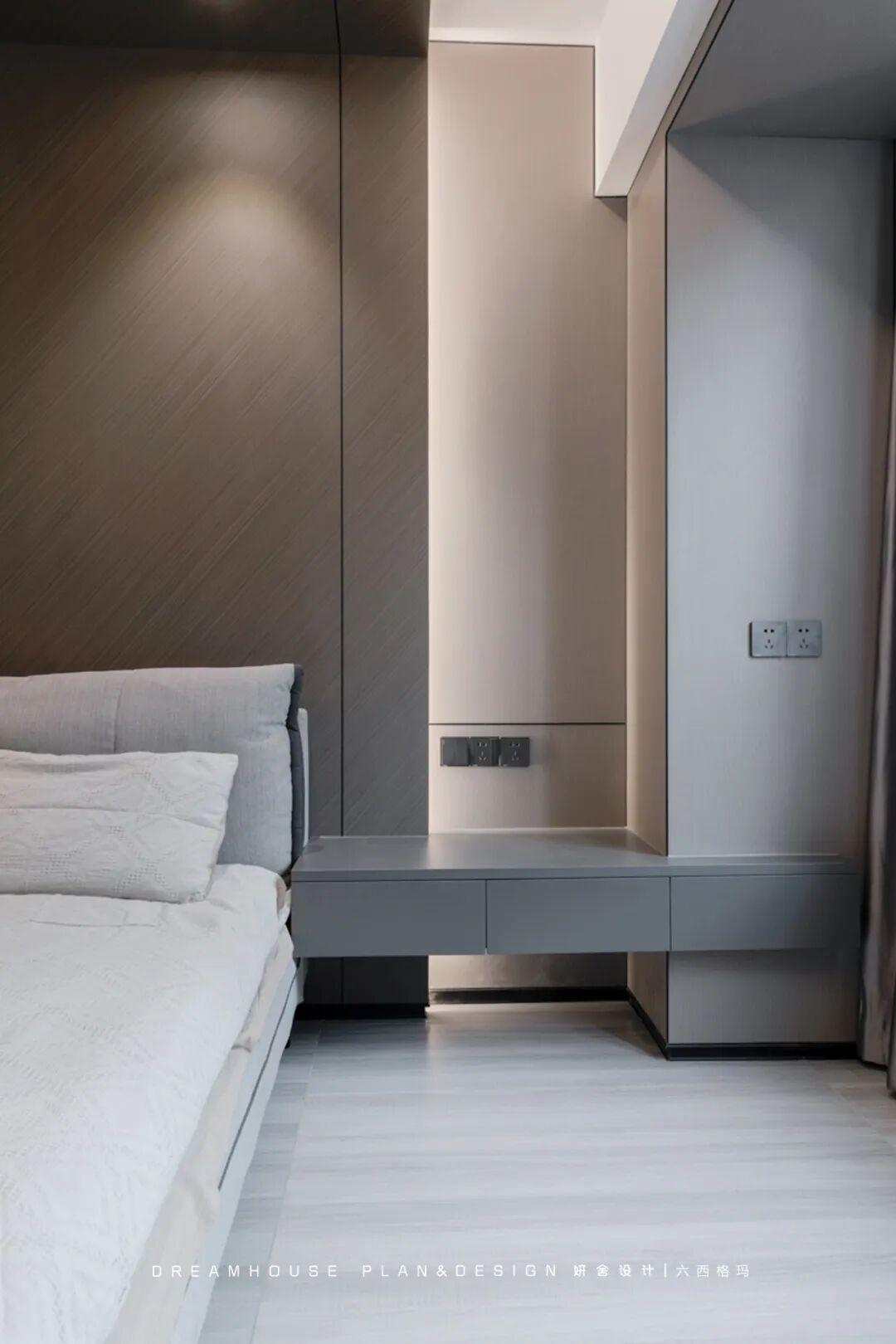 床侧没有衣柜怎么办?别急,利用墙面做悬空床头柜也是很实用的,不仅避免了卫生死角,也为卧室注入一些高级感⬇⬇⬇