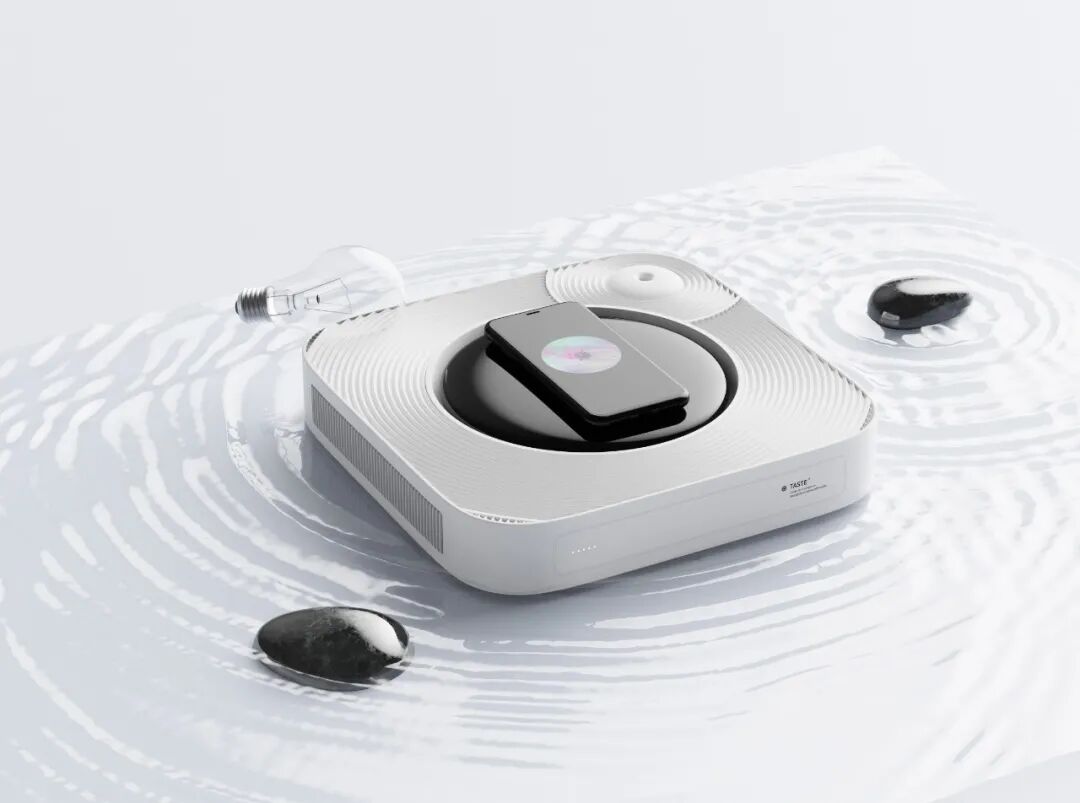 设计说明 | 泛乐助眠音箱所针对的是夜晚卧室场景下独居的青年。在产品结构上,采用了蓝牙音箱结合香薰机以及生物雷达睡眠监测技术,可实现无接触监测,并且通过个性化音乐和香薰达到的助眠效果。