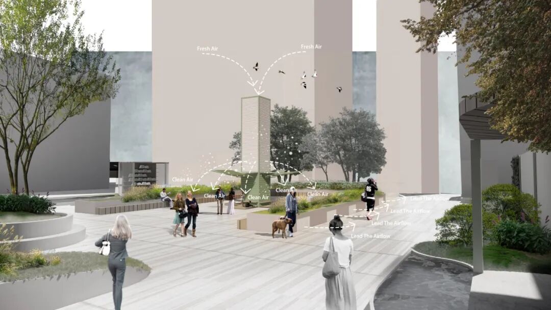 设计说明 | 方案选择中国上海这一人口密集城市作为设计实验场地。提出一个由“空气净化模块+弹性医疗救助模块”的组合模式,以集装箱为载体,置入到口袋公园中,为人们的公共活动空间提供安全屏障。