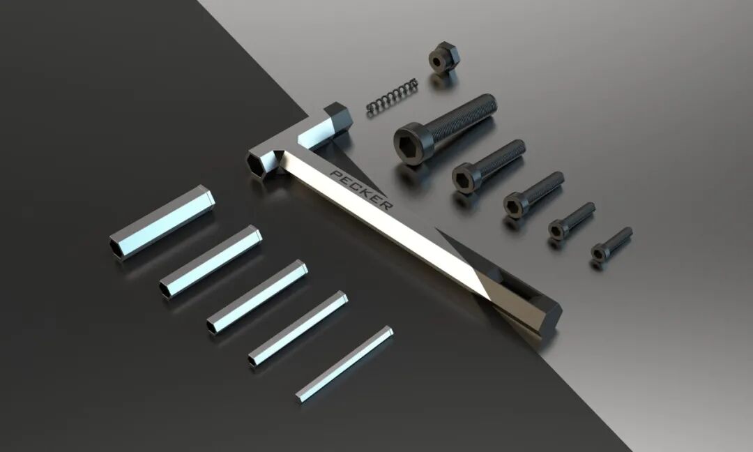 设计说明 | PECKER是针对六角匙做改良的概念产品。利用伸缩的特性缩短型号尝试的时间,同时更有效地防止单支工具的丢失。