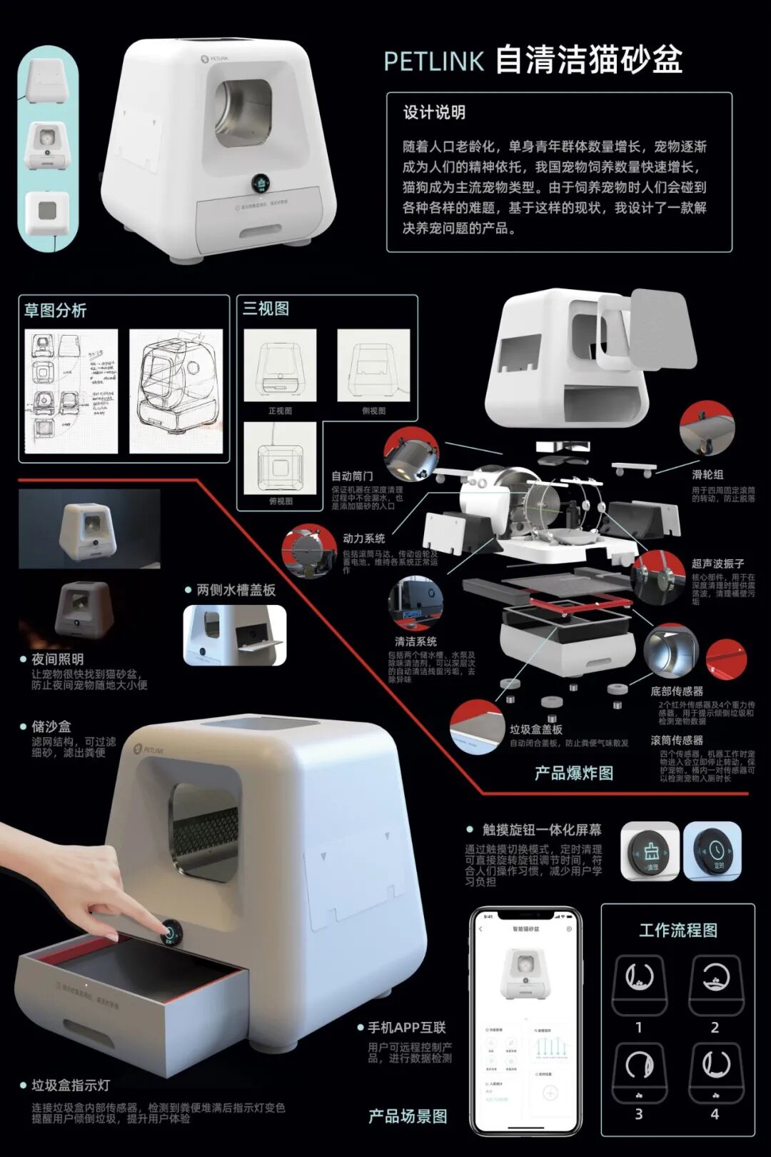 设计说明 | 随着人口老龄化,单身青年群体数量增长,宠物逐渐成为人们的精神依托,我国宠物饲养数量快速增长,猫狗成为主流宠物类型。由于饲养宠物时人们会碰到各种各样的难题,基于这样的现状,我设计了一款解决养宠问题的产品。