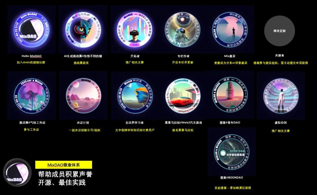 最近有不少读者朋友与 MixDAO 成员咨询如何参与社群共建,获得数字徽章。本期推文将为大家总结介绍目前MixDAO的徽章体系,以及参与活动、获取徽章的方式。