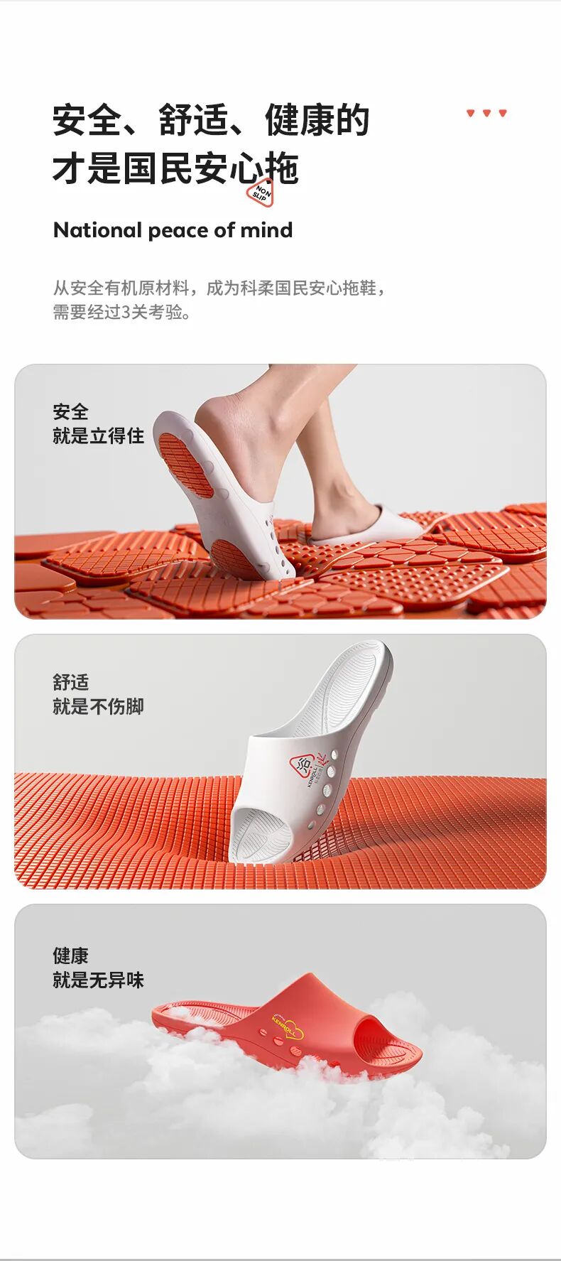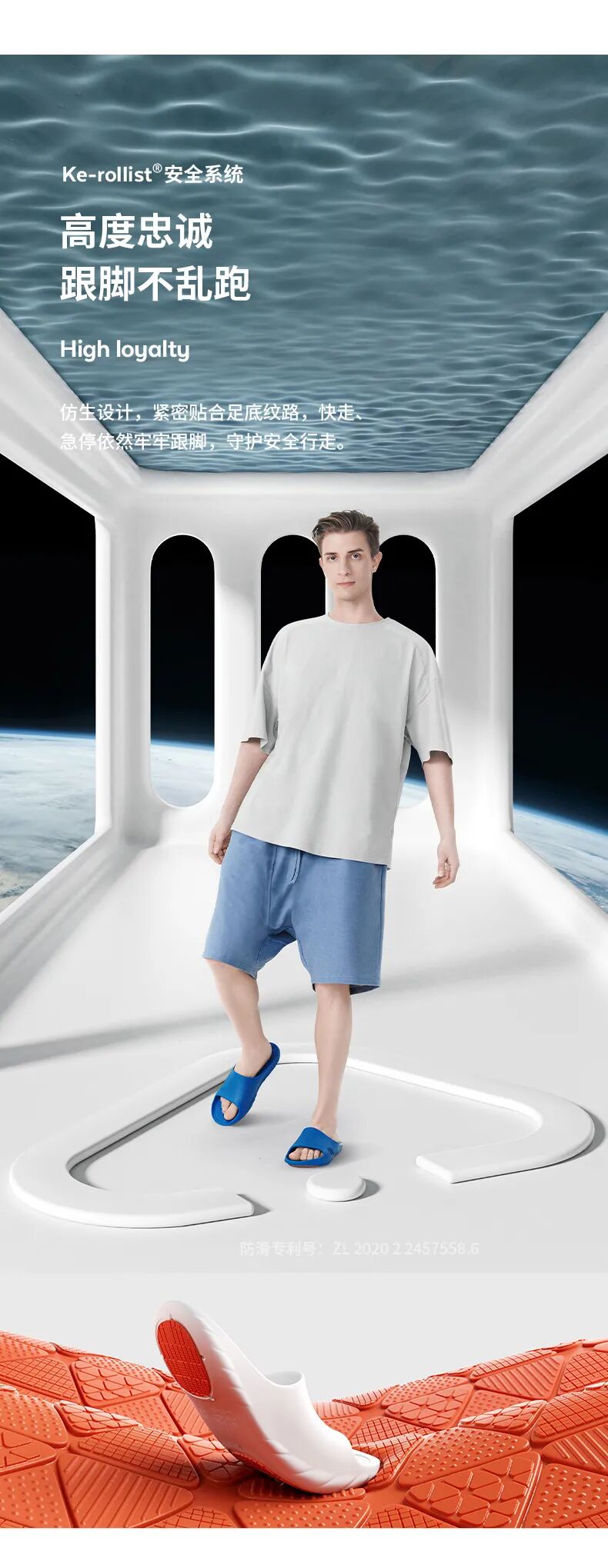 而这款则有一种高端科技的感觉,颜色上用的高级灰,整体的画面品牌调性十足。而且文案侧重表现产品的防滑和安全卖点,非常精准,直戳消费者痛点。