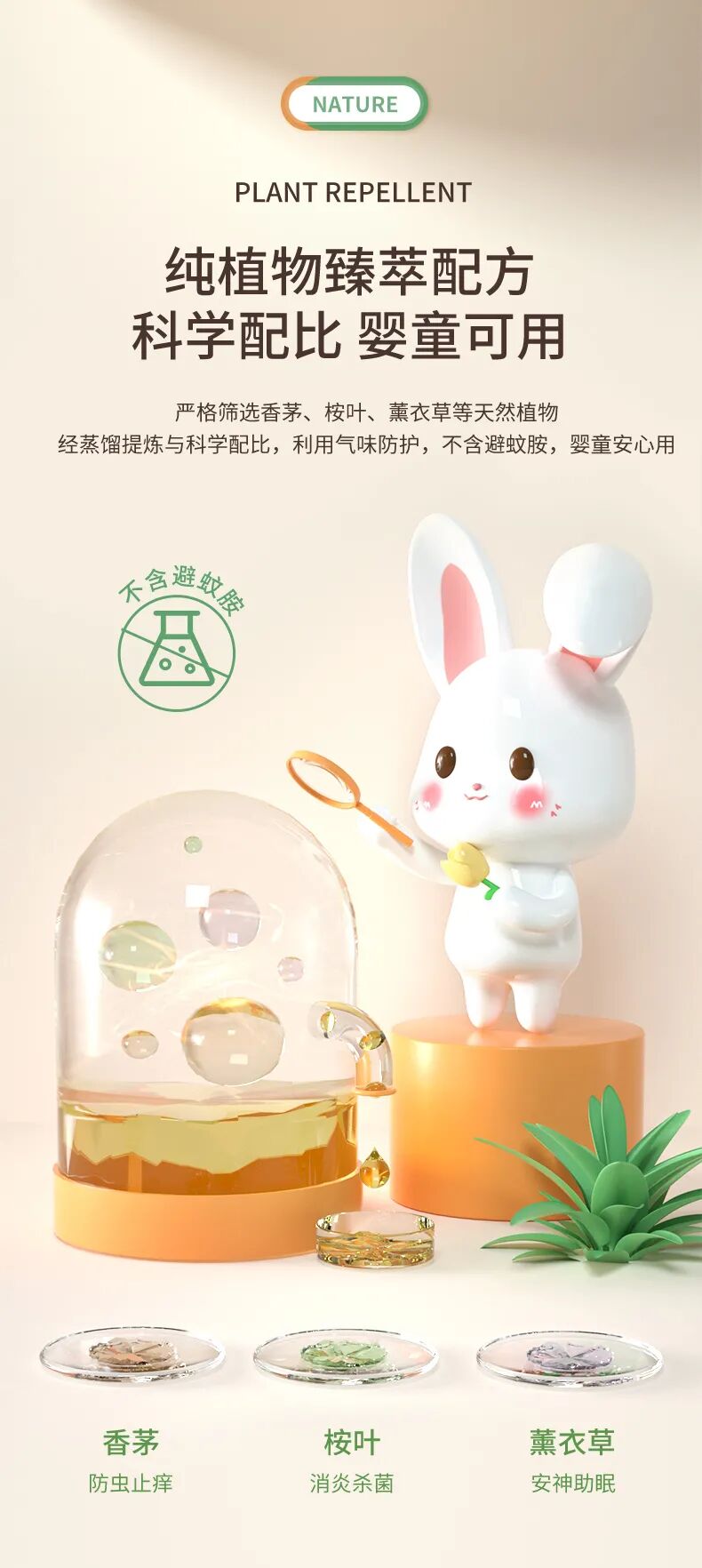 这款精油防护贴设计的很不错,小兔子的IP设计很有记忆点,搭配产品,很有代入感。