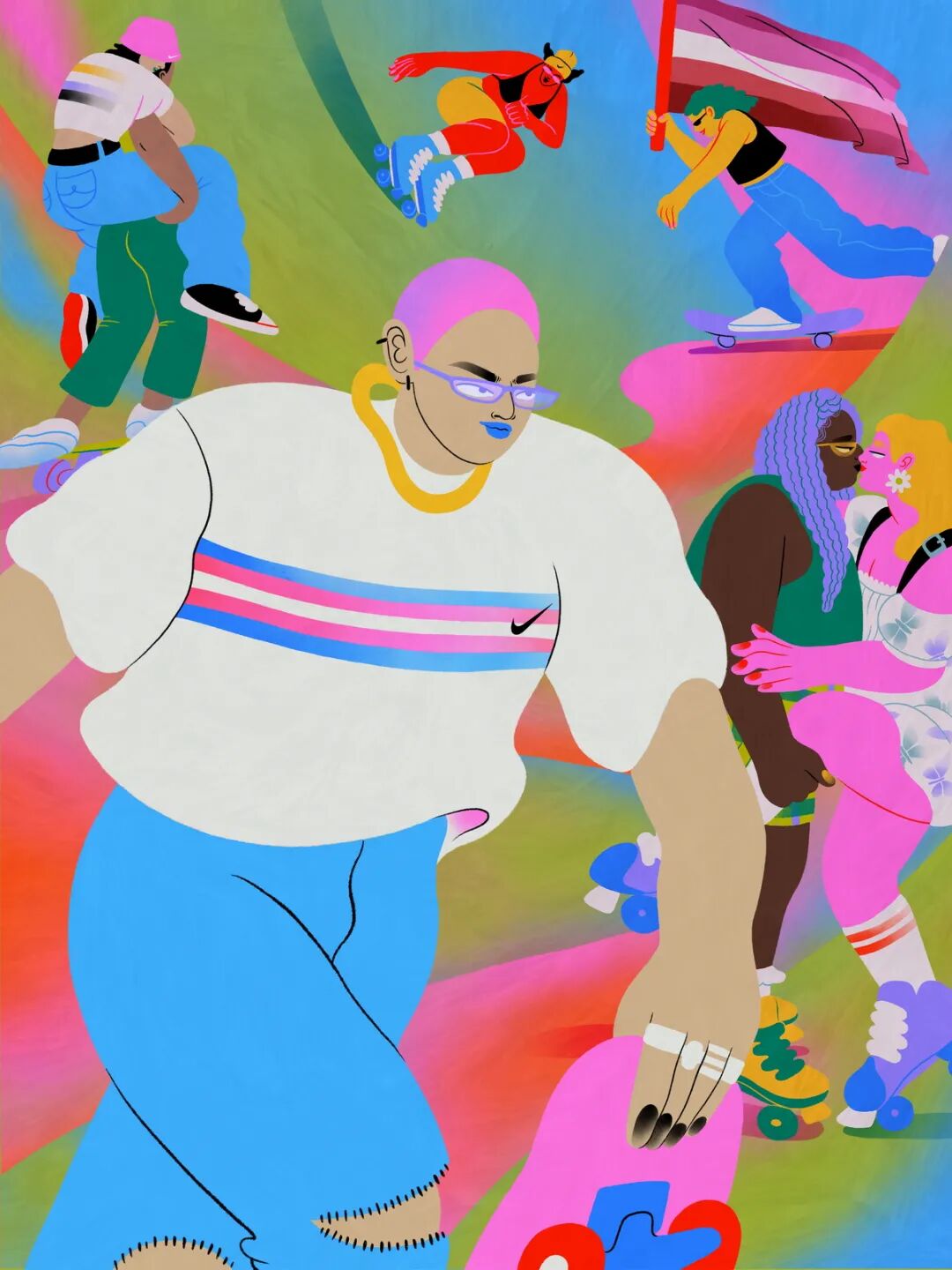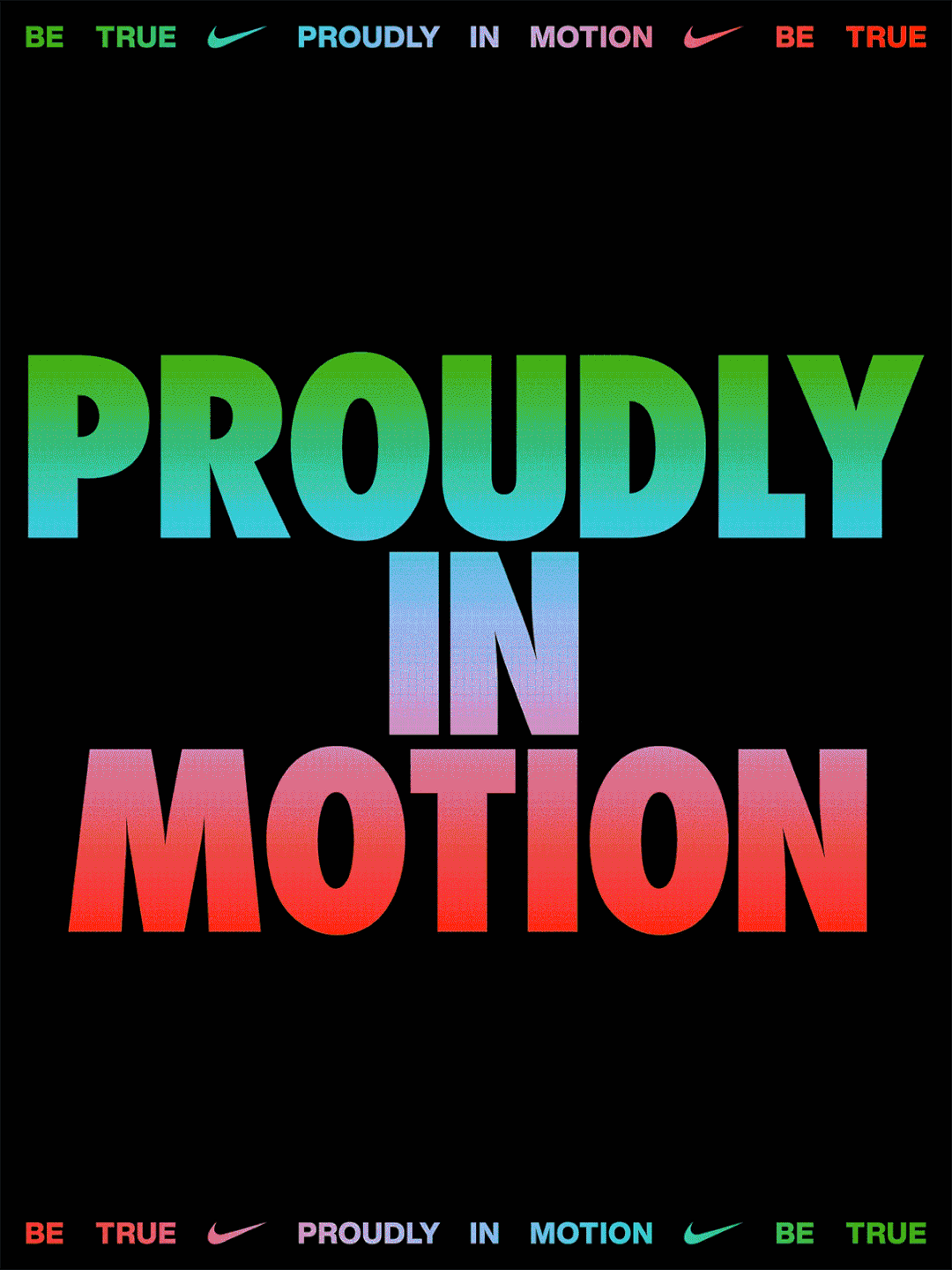 PORTO ROCHA 为耐克的Pride计划重新设计了识别系统,Be True,可以作为一个动态平台,与世界各地的LGBTQIA+艺术家和运动员合作创建。为 Be True 的重新启动制作的图像体现了这种庆祝和合作的方式,以同性恋摄影师、作家、造型师、设计师、插图画家和其他创作者的作品为特色--被动画化为 "骄傲的运动"。
