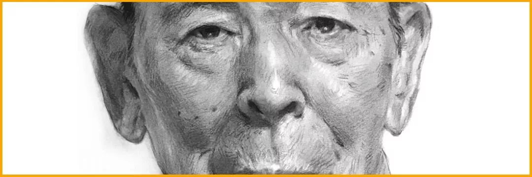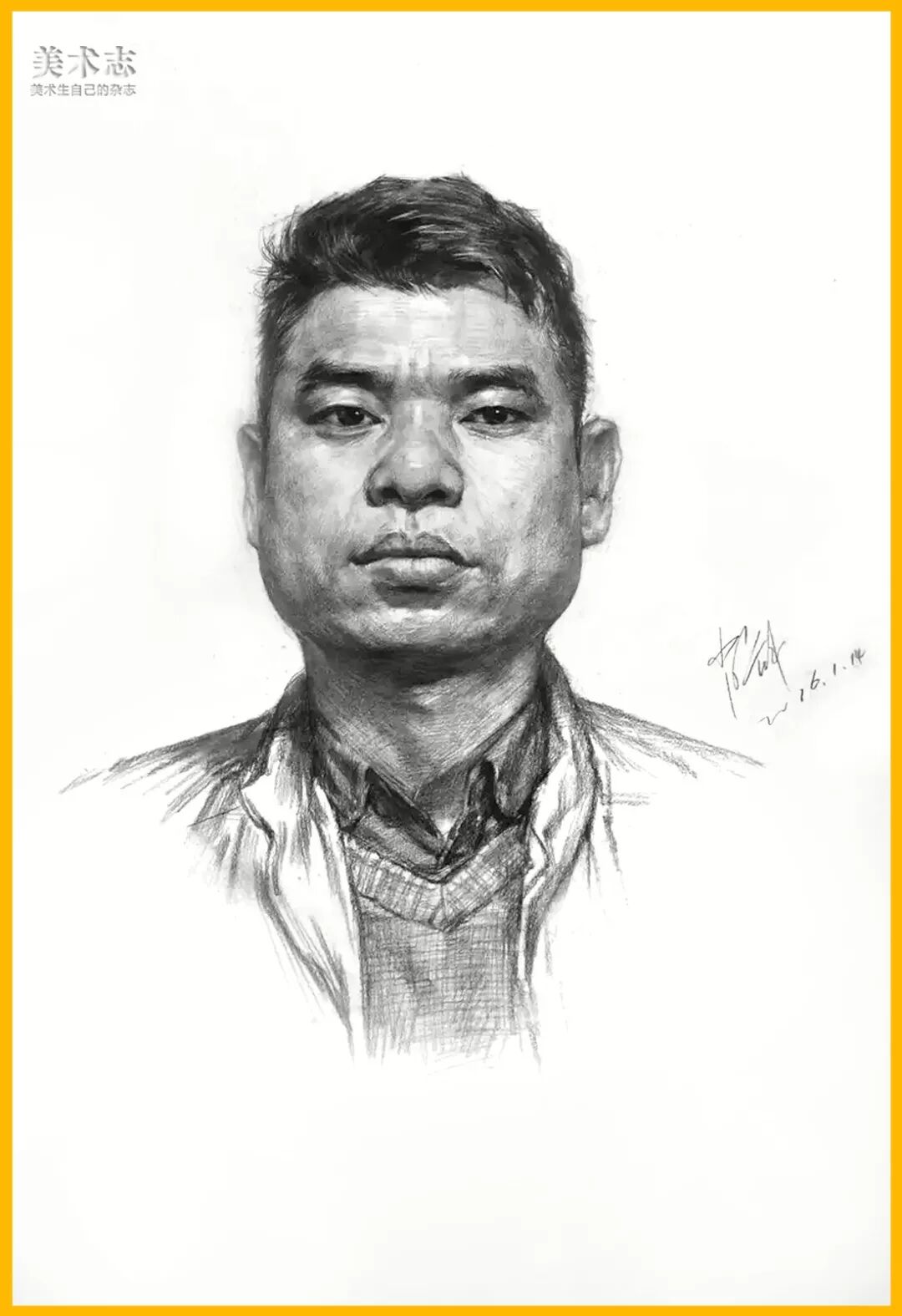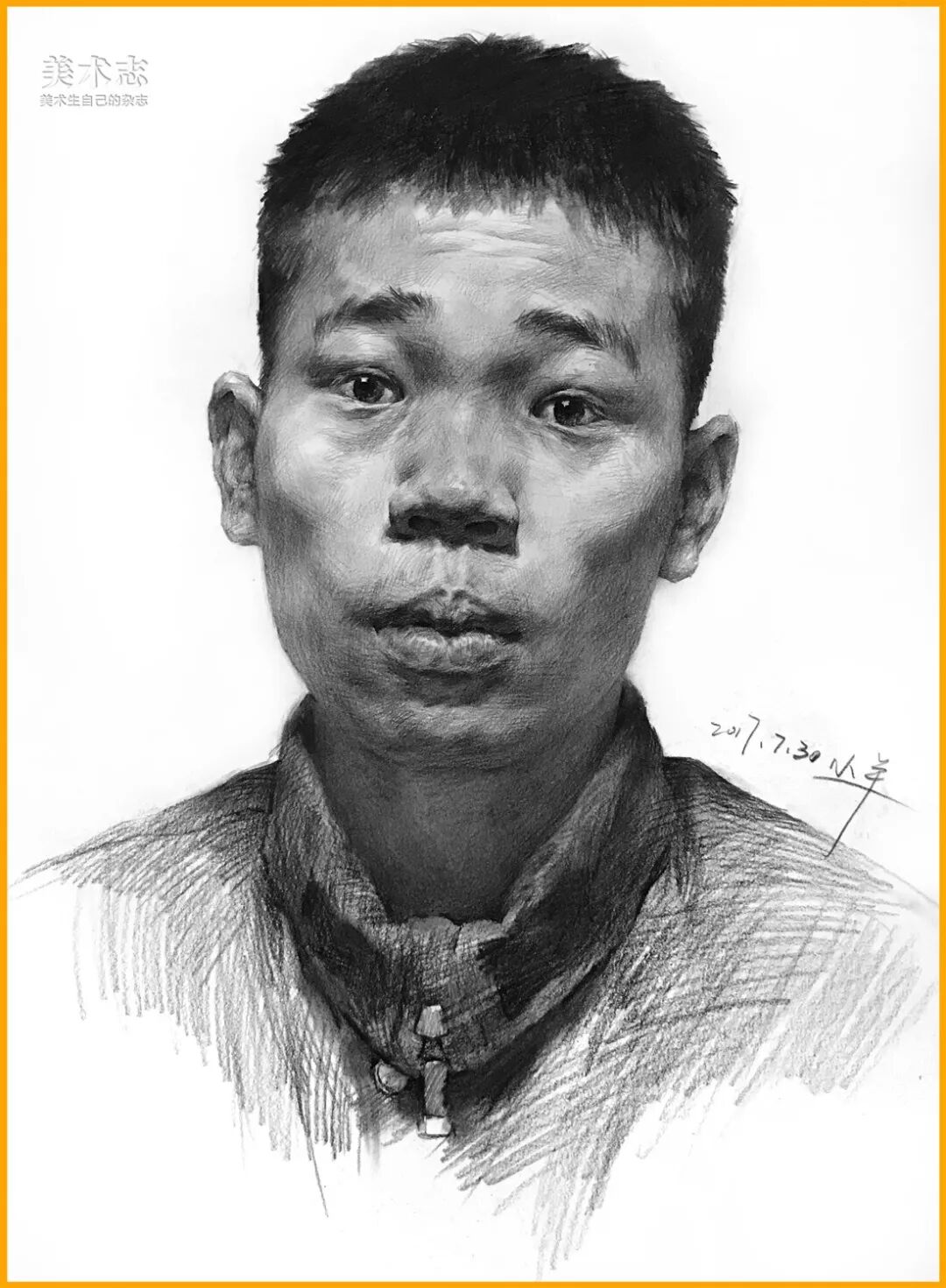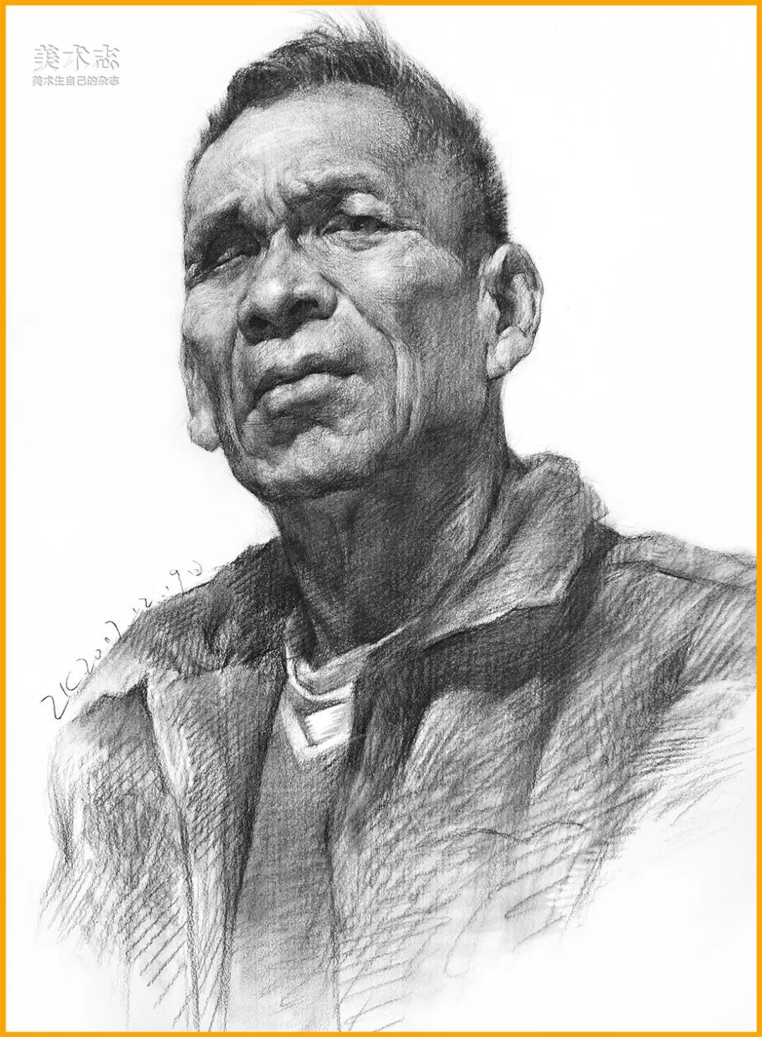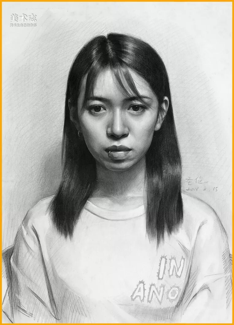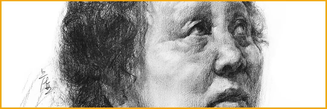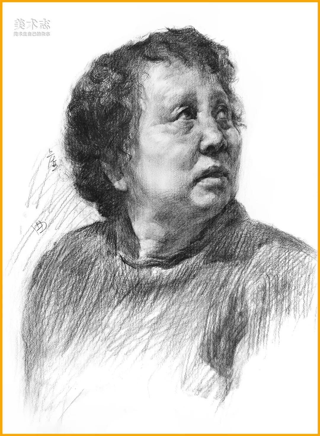 ④从鼻子到耳朵的前后空间关系,根据空间控制对比度。脸(包括颧骨咬肌至下颏的明暗交界线)适当的减弱对比度。千万不要描边缘线。