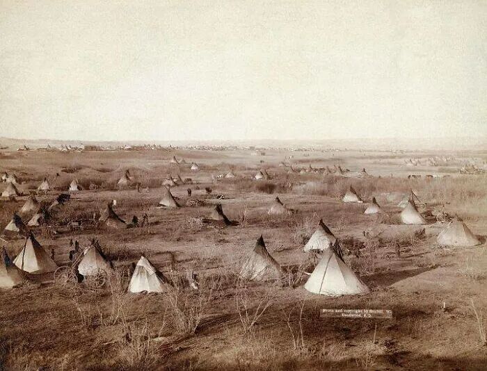 1800年代,苏族美洲原住民帐篷遍布大平原(拍摄于达科他州)。