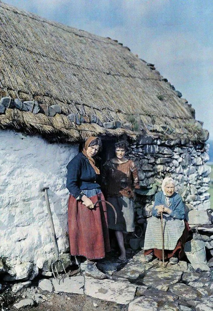 1927年,爱尔兰石屋外的三代妇女。