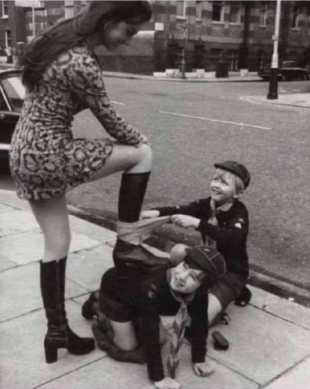 上世纪1930年代时,一名英国约克郡的马戏团小矮人,他正骑车小斑马在一辆轿车面前遛弯,十分的滑稽。
