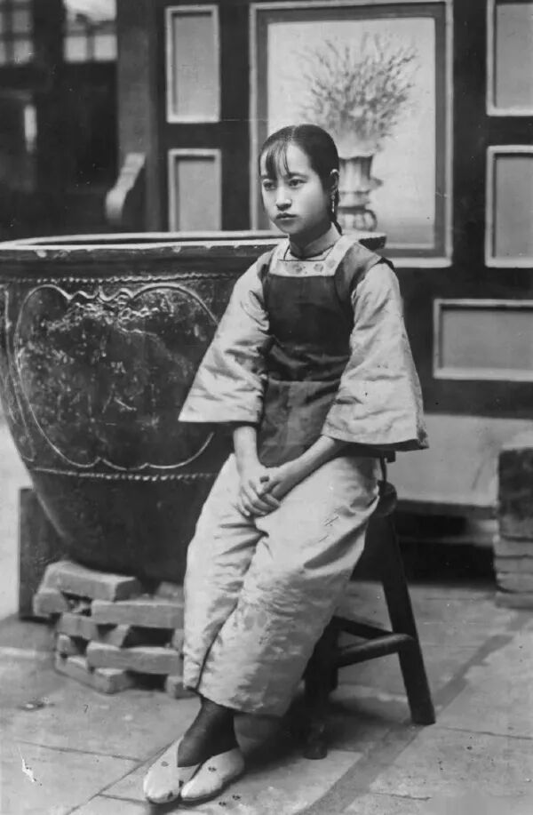 1926年,江西的一位少女,从穿着打扮看有一定社会地位,而且她没有裹脚,还穿着黑丝袜。