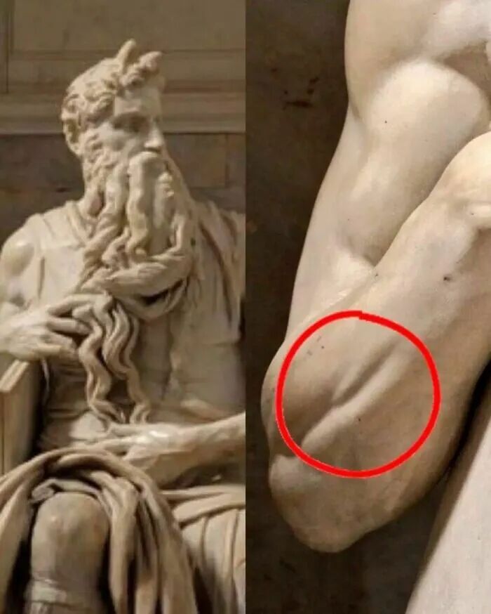 米开朗基罗的摩西是1513-15年制作的大理石雕塑,细节之一是前臂一块非常小的肌肉,只有抬起小指时才会收缩。