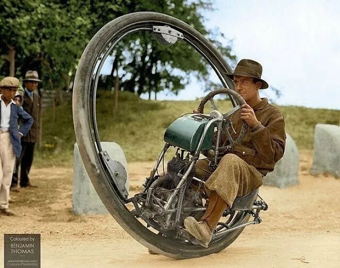 驾驶轮式摩托车的人,1931年。