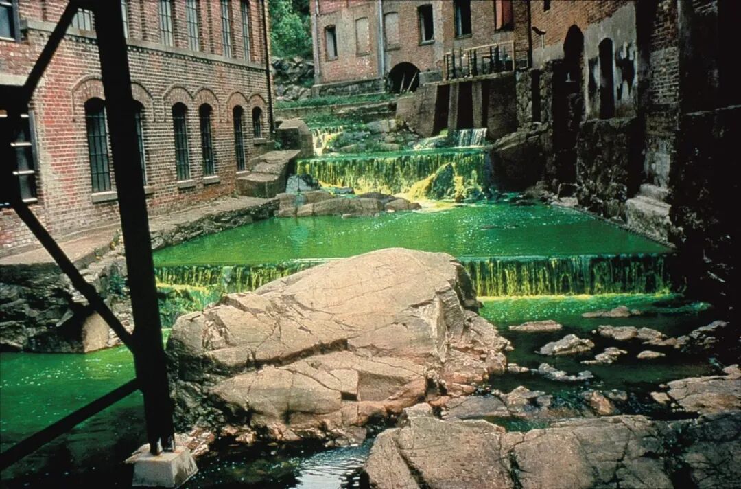 在1998年柏林双年展期间,埃利亚松在施普雷河上进行了一次试验:从博物馆岛附近的一座桥上洒下一捧无毒但高度着色的荧光素钠粉末,让整条河流顷刻间变为绿色。