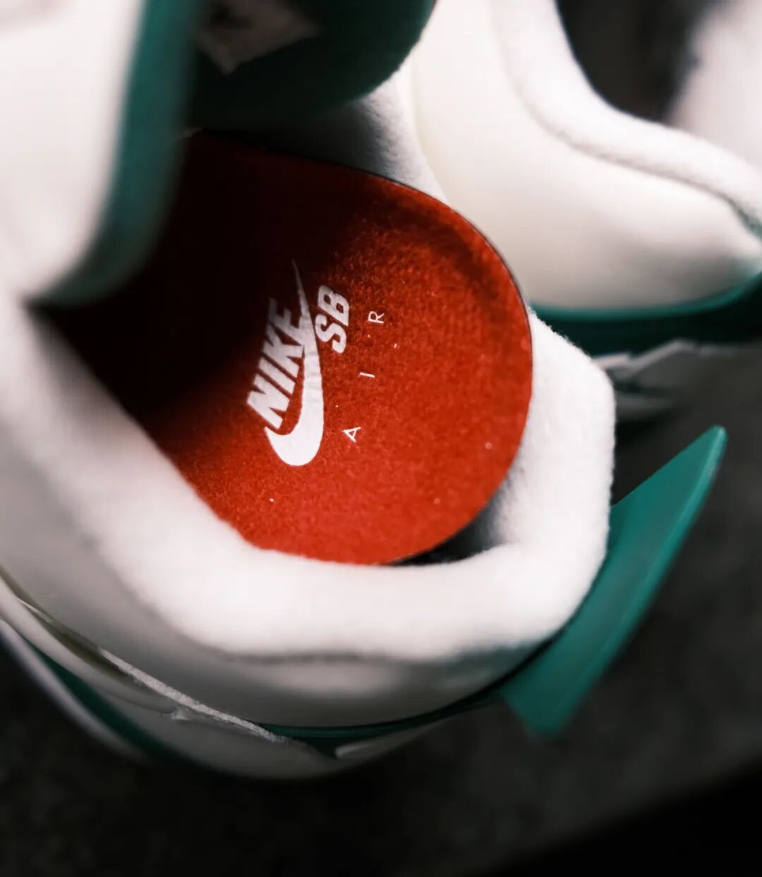 就像 SB Dunk 与传统 Dunk 相比,增加了鞋舌内的填充物,这双 Nike SB x Air Jordan IV 同样在鞋舌以及内衬部分做了加厚处理,来达到脚踝锁定与保护的效果。虽然不像 SB Dunk 那般明显,但至少也称得上是肉眼可见。