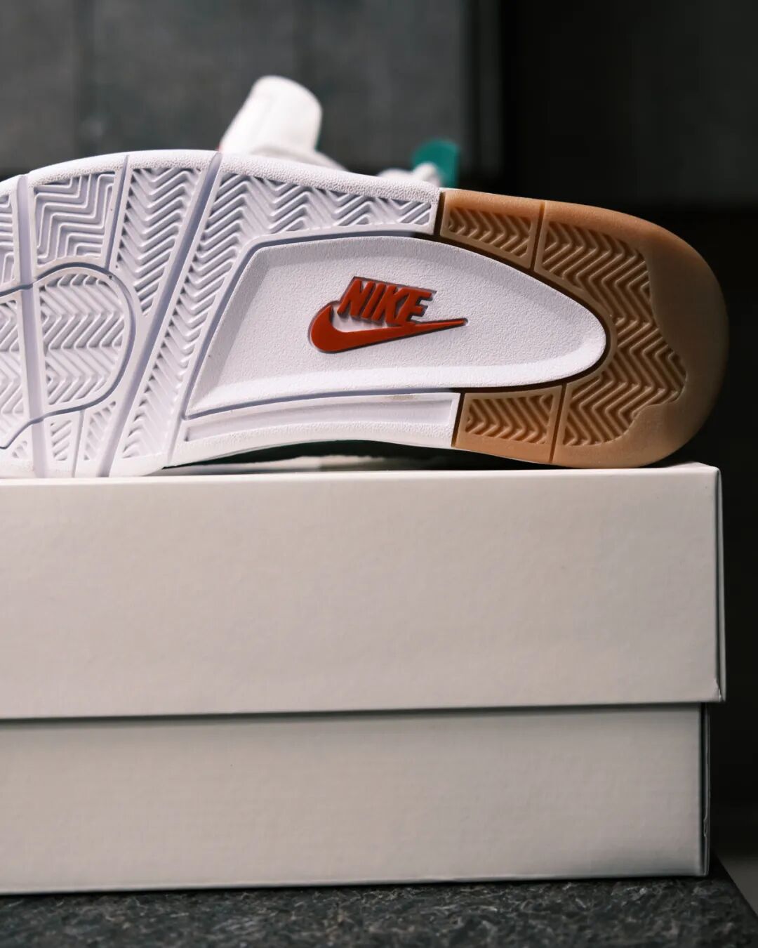 在传统的 Air Jordan IV 鞋款中,配置为前掌 Air Sole 与后掌可视化 Air Sole。但据 Twitter 用户 TuxedoAmerica 分享:这一次鞋款取消了前掌的气垫,反而不是像以往的 SB Dunk 鞋款那样会多搭载一款 Zoom Air 单元。