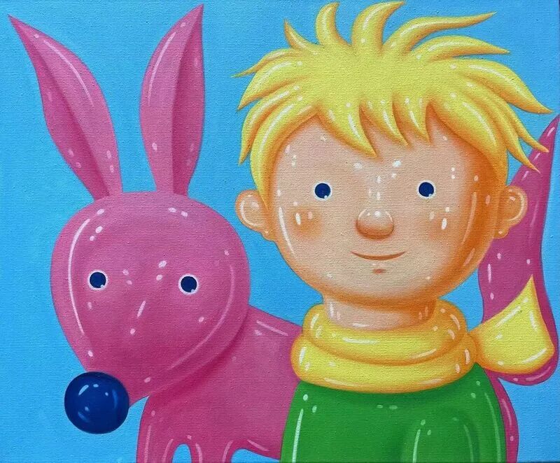 本次展览作品由我和杨画廊共同挑选。代表了各个时期的作品,既有一些老的经典作品,也有近两三年的新尝试,包括油画、丙烯、版画等。以及雕塑和艺术衍生品,我真诚地希望你喜欢它们。