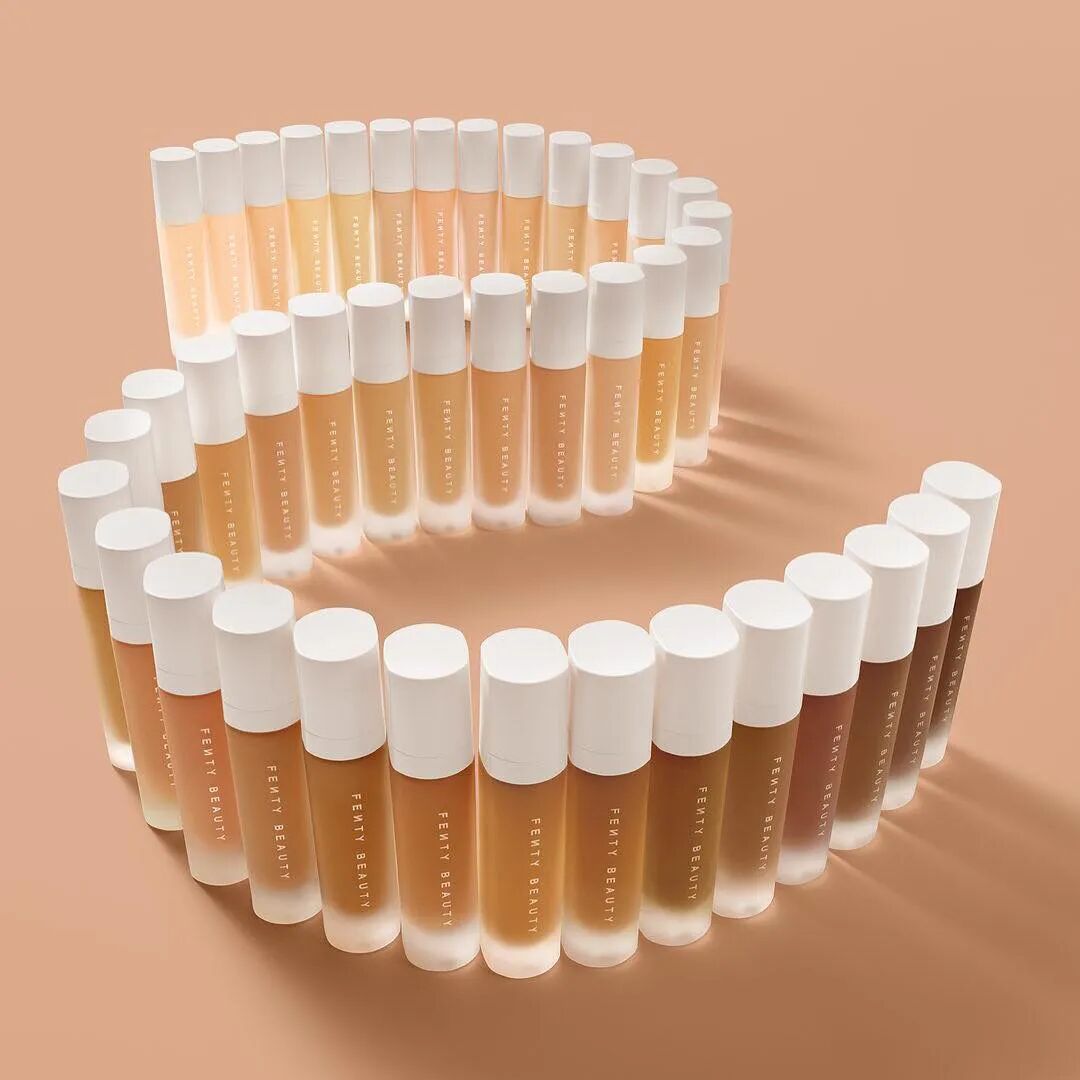 2017年Rihanna成立了自己的彩妆品牌Fenty Beauty。本着让各种肤色的女孩都能找到最适合自己肤色的底妆为宗旨,Fenty Beauty的粉底液色号多达40个。