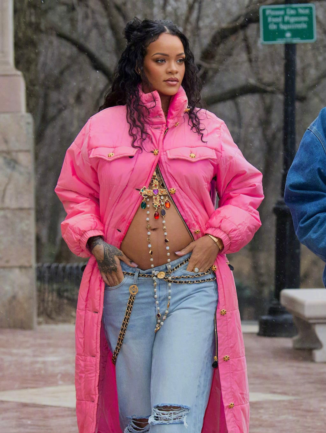 日常街拍也是想穿什么穿什么,怀孕时的一张露肚皮街拍也能引发热议。