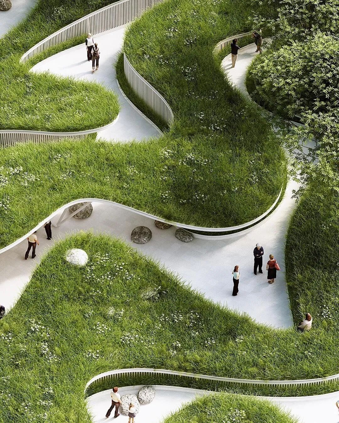草坪是景观项目中出镜率极高的空间,常作为下层空间的基底出现。和大众印象中一望无际的大草坪不同,草坪其实也有很多高级有趣的玩儿法。