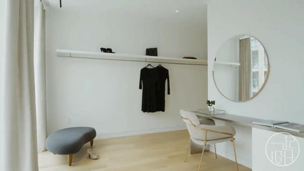 衣帽间还拥有独立的化妆台,连续落地窗为住户提供广阔的视野。