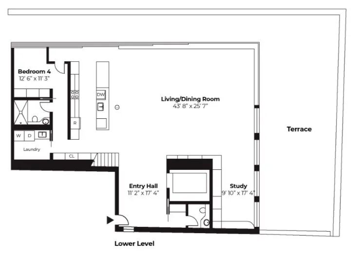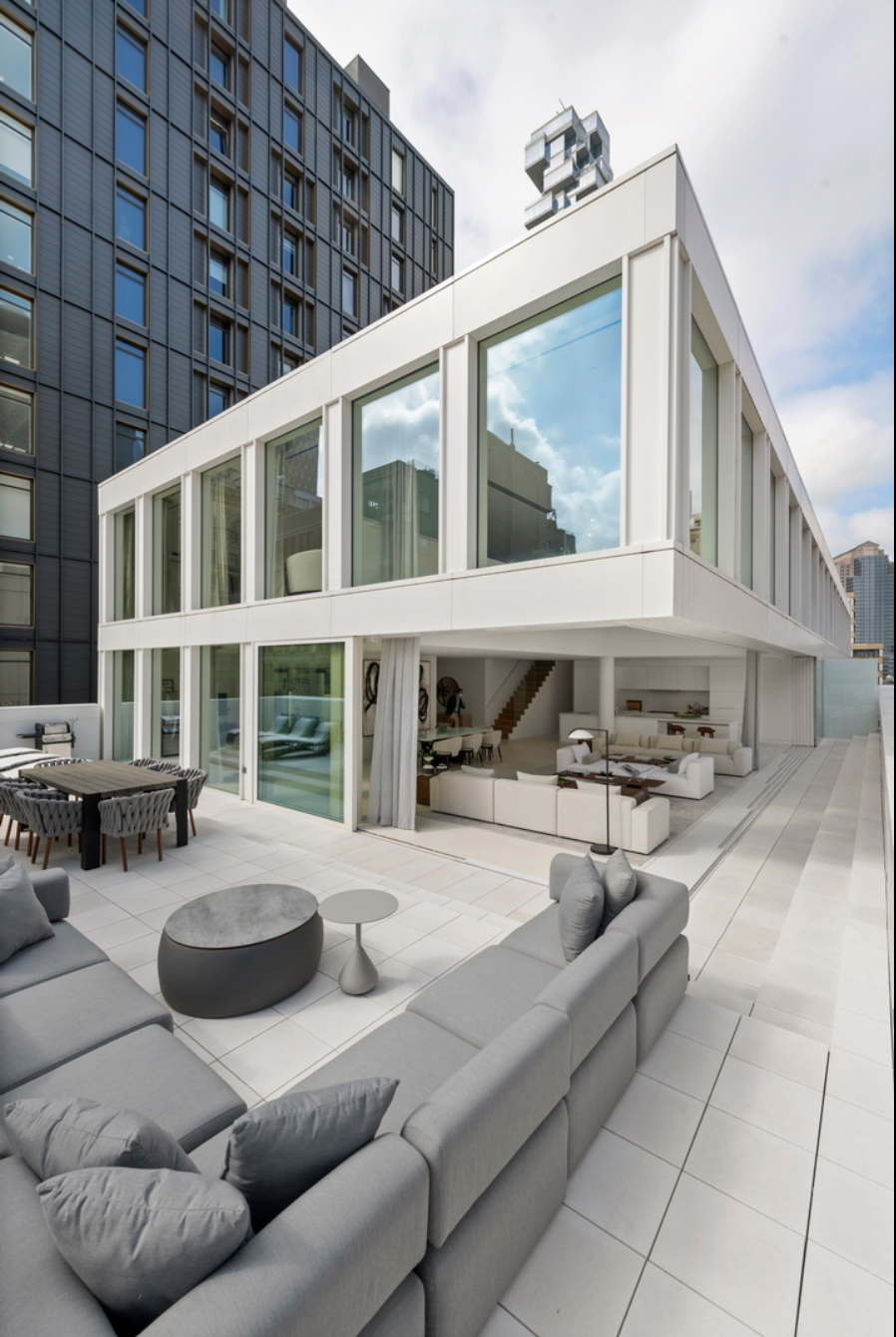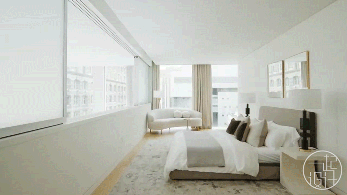 顶楼东西两座双层公寓的建筑立面及室内均由坂茂设计完成,下文将主要叙述东座公寓,其居住面积达353㎡,户外面积为142㎡,共包含有4间卧室,3.5间浴室,总售价约1295万美元(约8284万元人民币)。