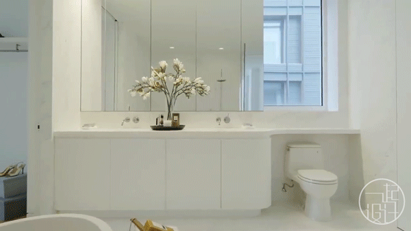 另一侧的套间主卫空间设双洗漱台,方便主人高峰期使用。