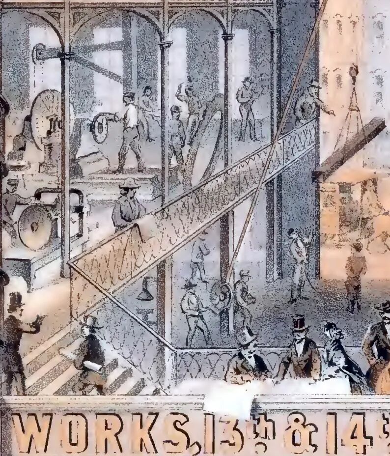 对于地板和屋顶,Bogardus使用了带互锁连接的轧制铁板。楼板横梁浇铸成浅节段拱的形式,用熟铁拉杆给他们必要的拉力。这些楼板梁被做成大梁,浇铸成今天的I型梁的形状。
