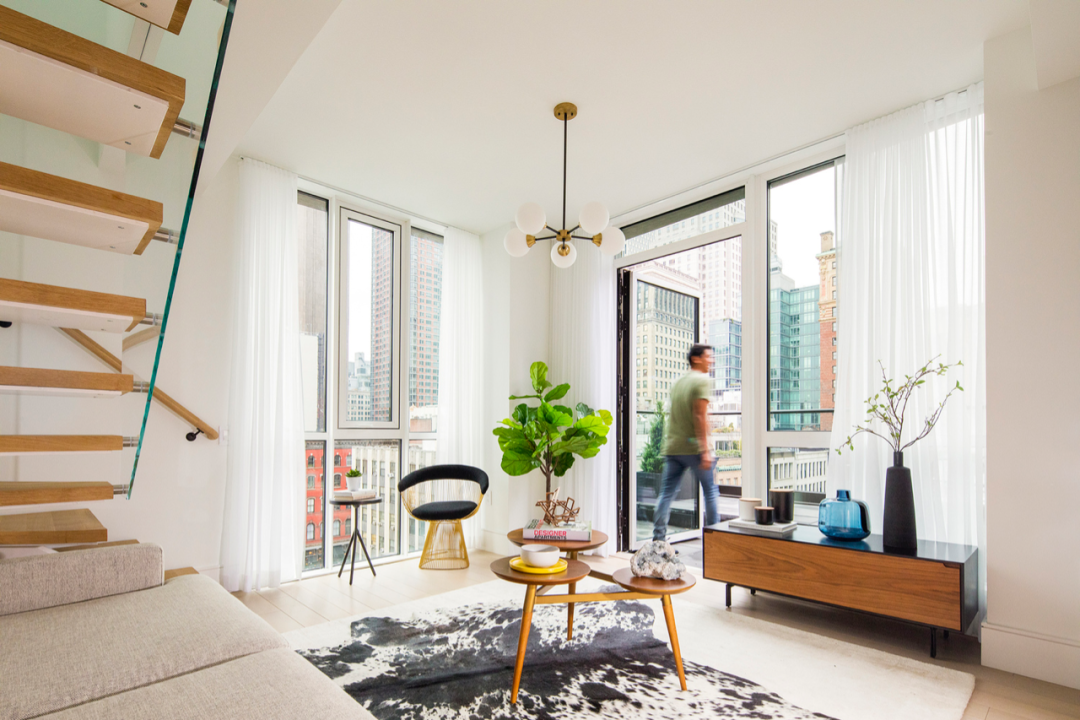 高大的落地窗将饱和的自然光线洒入宽阔的公共区,把户外都市景色变成室内的一部分。
