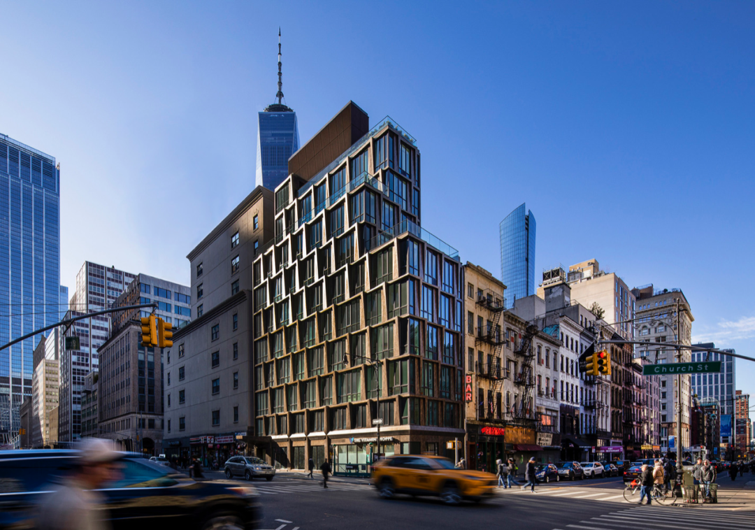 位于Tribeca街区的十层公寓大楼是一座源于1857年的意大利文艺复兴建筑,占据繁忙的十字路口地块。