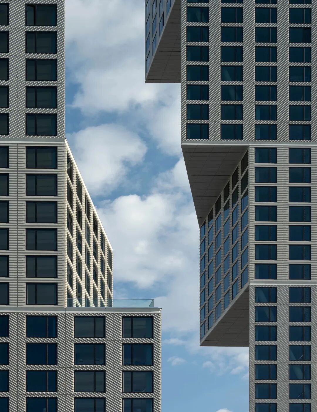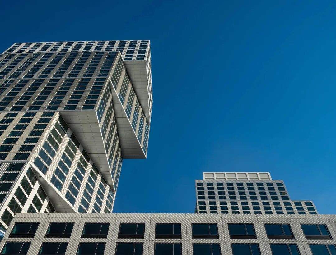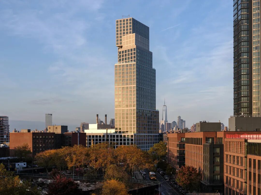 OMA 的建筑师们战略性地塑造了布鲁克林 Eagle + West 的两座塔楼,在每座塔楼中通过扩展和收缩形式以获得最大的效率。它们相互靠拢,又相互远离。四十层的塔楼随着它的上升而变宽,最大限度地扩大了视野,为社区创造了一个戏剧性的面貌。三十层楼的排屋向地面扩大,面向海滨广场。变化的阶梯和悬挑强调了这两座建筑的联系——这两座建筑之间的空隙将它们紧密地联系在一起。